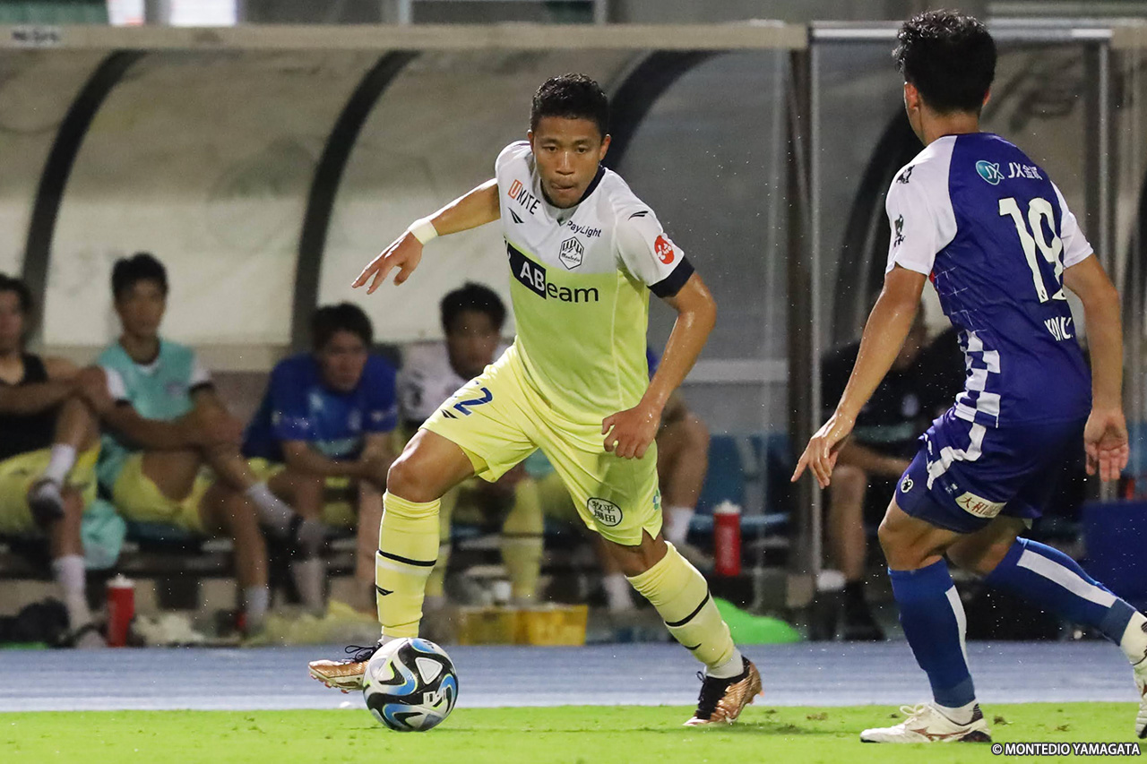 飲水タイムのあとも自陣でプレーする時間は多いままだったが、31分にようやく決定機を作る。相手のフィードを野田が頭ではね返し、田中渉がワンタッチでくさびを入れると、中央で受けた藤本がスルーパス。右サイドからペナルティーエリア内に入り込んだ横山塁がシュートを放ったが、これは枠の外へ。