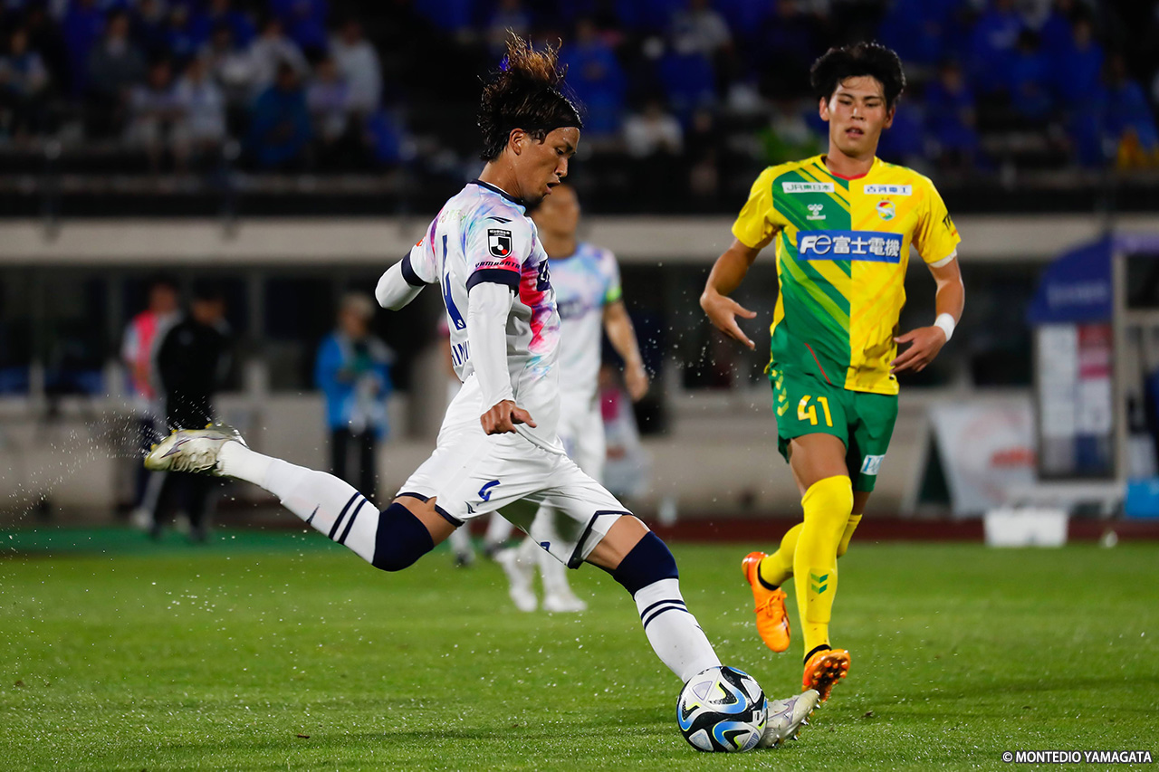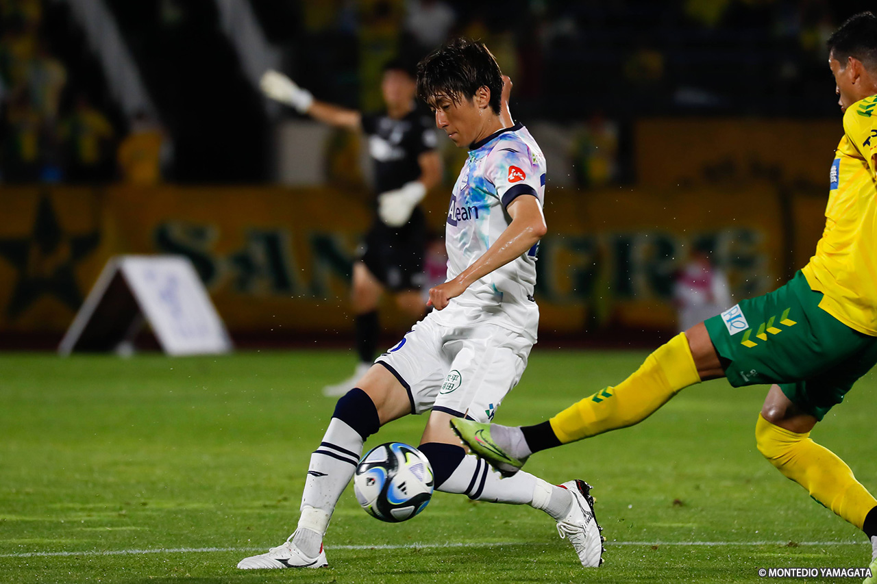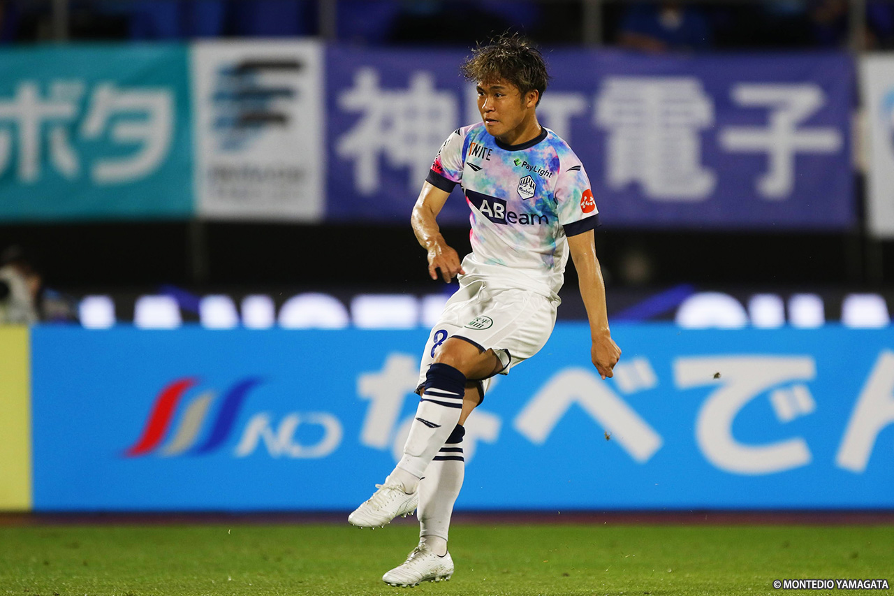 A:山形に来てから、このスタジアムで初めてゴールを決められたというのも嬉しかったですし、今シーズン、自分のゴールだったり、アシストで勝利につなげるという試合がなかなかなかったので、こういう難しい試合でしたけど、自分のゴールでチームを勝利に導けたというのは、すごく嬉しかったです。ここからどんどんチームの力になれたらなとは思っています。