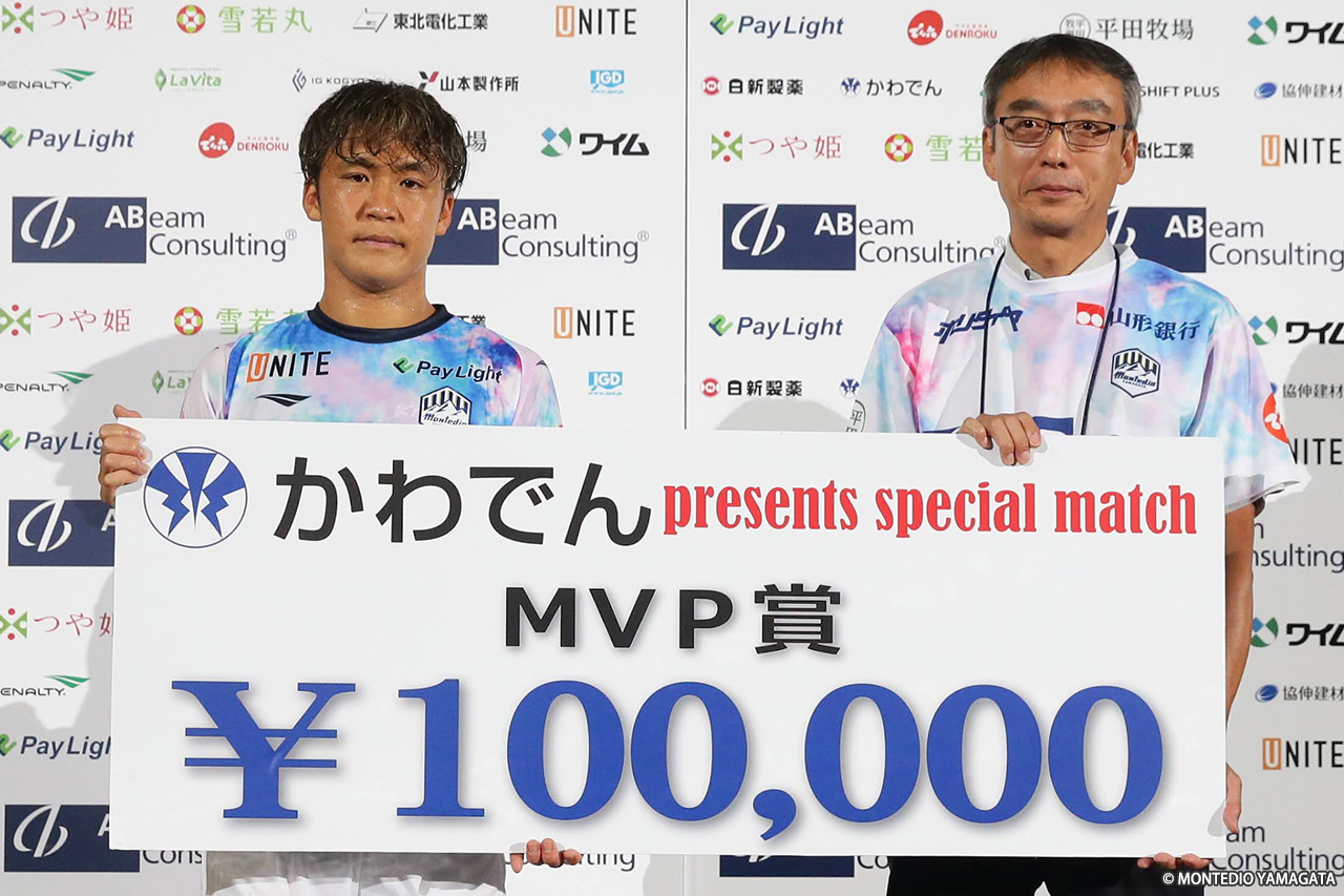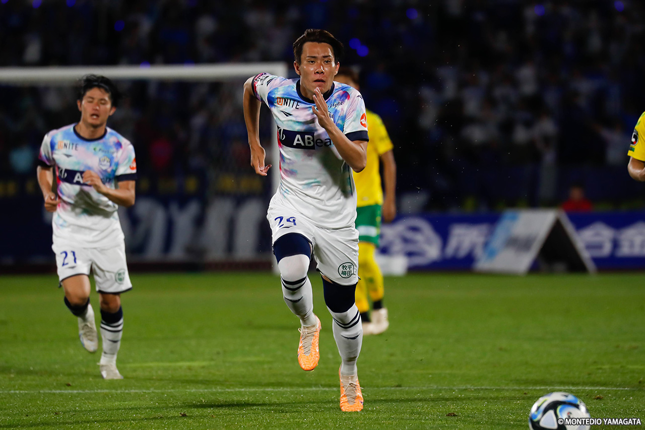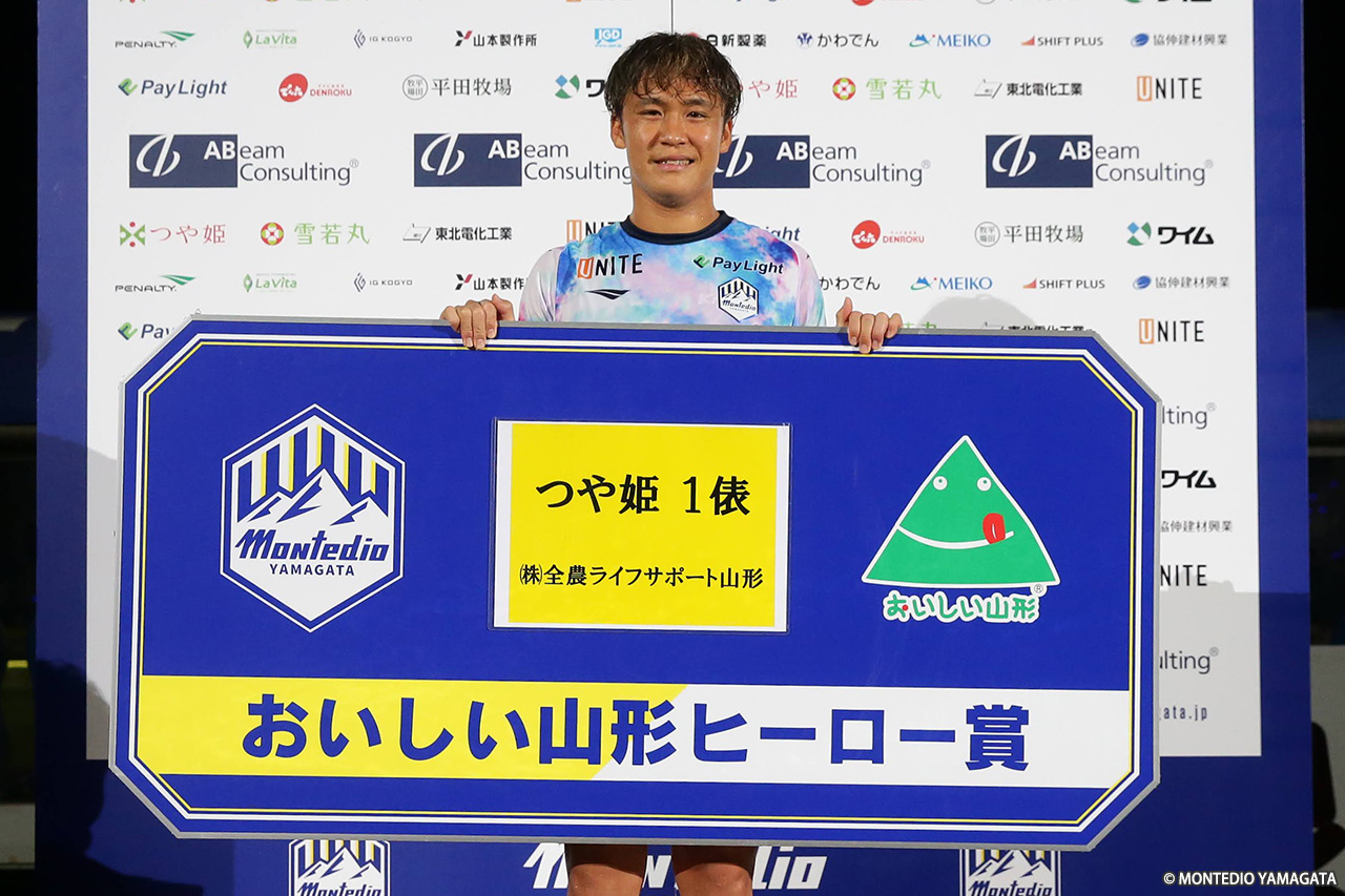 A:山形に来てから、このスタジアムで初めてゴールを決められたというのも嬉しかったですし、今シーズン、自分のゴールだったり、アシストで勝利につなげるという試合がなかなかなかったので、こういう難しい試合でしたけど、自分のゴールでチームを勝利に導けたというのは、すごく嬉しかったです。ここからどんどんチームの力になれたらなとは思っています。