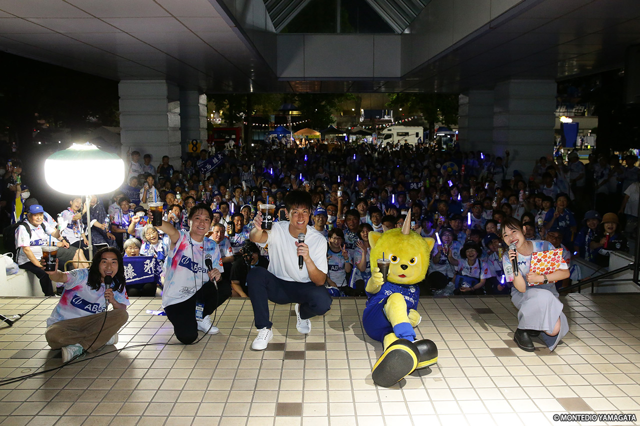 1万4000人を超えるサポーターの皆さん、NDスタジアム山形に集まっていただきまして本当にありがとうございます。最高の雰囲気を作ってくれて、選手たちもしっかりそこで躍動できたと思います。また、中継の先からも、我々の勝利を信じてあるいは勝利を期待して声援を送ってくれた方がいらっしゃったと思います。本当にありがとうございました。
