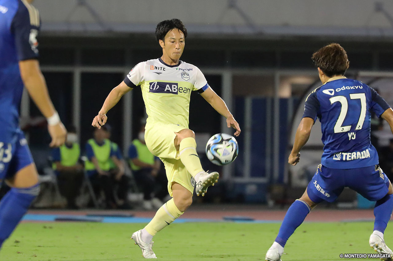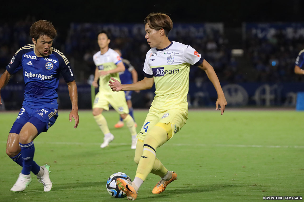 モンテディオは58分、山田、國分を下げて横山塁と田中渉を投入。3バックに変更し、横山を左のウイングバック、後藤優は田中とともにシャドーを担った。その効果もあり、70分手前には藤本や後藤優のシュートチャンスを作ったもののゴールネットを揺らすことはできなかった。
