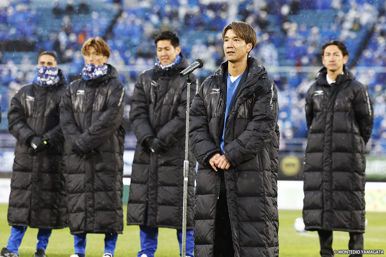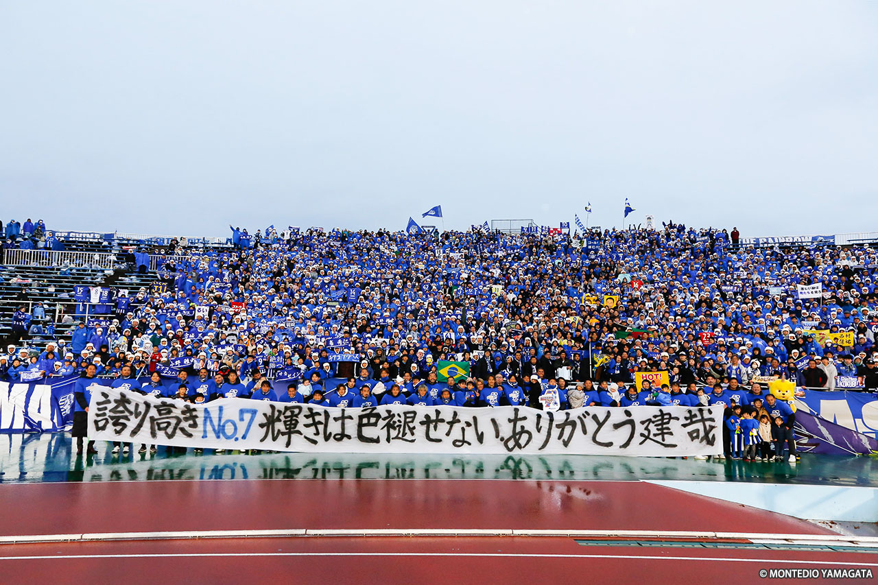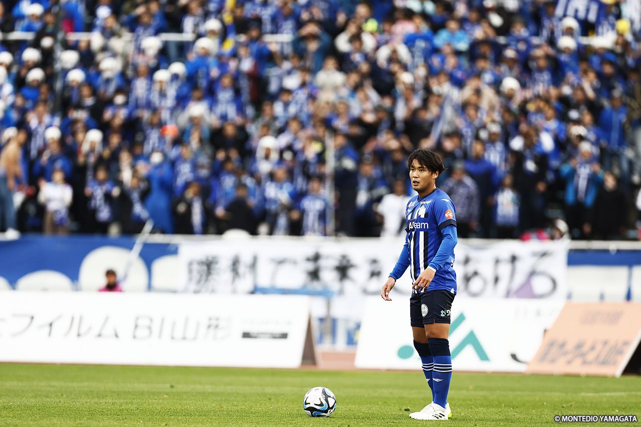 A:山形のサポーターは私にとって、すごく大事な戦力だと思います。どんなときでもチームのために、たまには厳しい声もありますけど、それを僕たちも真摯に受け止めて、チームのために、僕たちのために後押ししてくれていると思います。僕たちプレーヤーとしては、その素晴らしいサポーターたちがいつも期待してくれているので、その期待に応えられるように、いつも僕たちがピッチに立ちますし、彼らがいなければ、僕たちはここまで来られなかったと思います。