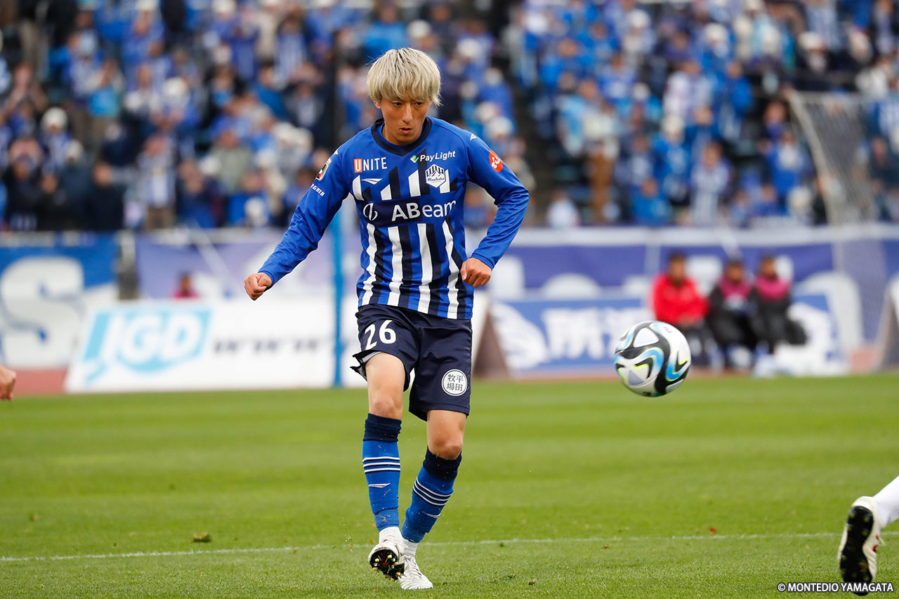 その後は中央のスペースで髙江がフリーになるシーンが多く、28分にはイサカに合わせて長いスルーパスを送ったり、29分には浮き球をピンポイントで後藤優介の足元に合わせたりしたが、いずれも打ちきれず。押し込んだ31分にも、最後はボックス内でチアゴがシュートを放ったが、これも枠には飛ばなかった。