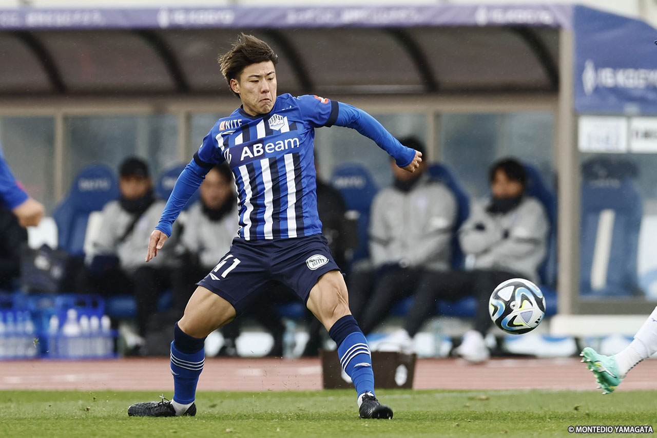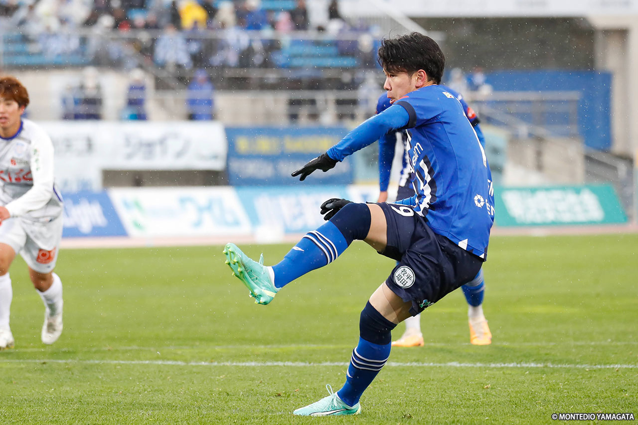 ここからはオープンな展開になっていくが、そうした展開を得意としているのはモンテディオ。長いボールも使いながら、相手ボールに強烈にプレッシャーをかけ続けると、徐々にペースを握る。アディショナルタイム直前にはシュートコースをこじ開けた宮城がミドルシュートを放ったが、これはキーパーの正面。その直後にもカウンターから最後は高橋がミドルシュートを放ったが、ここは枠をそれた。