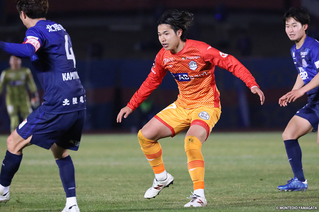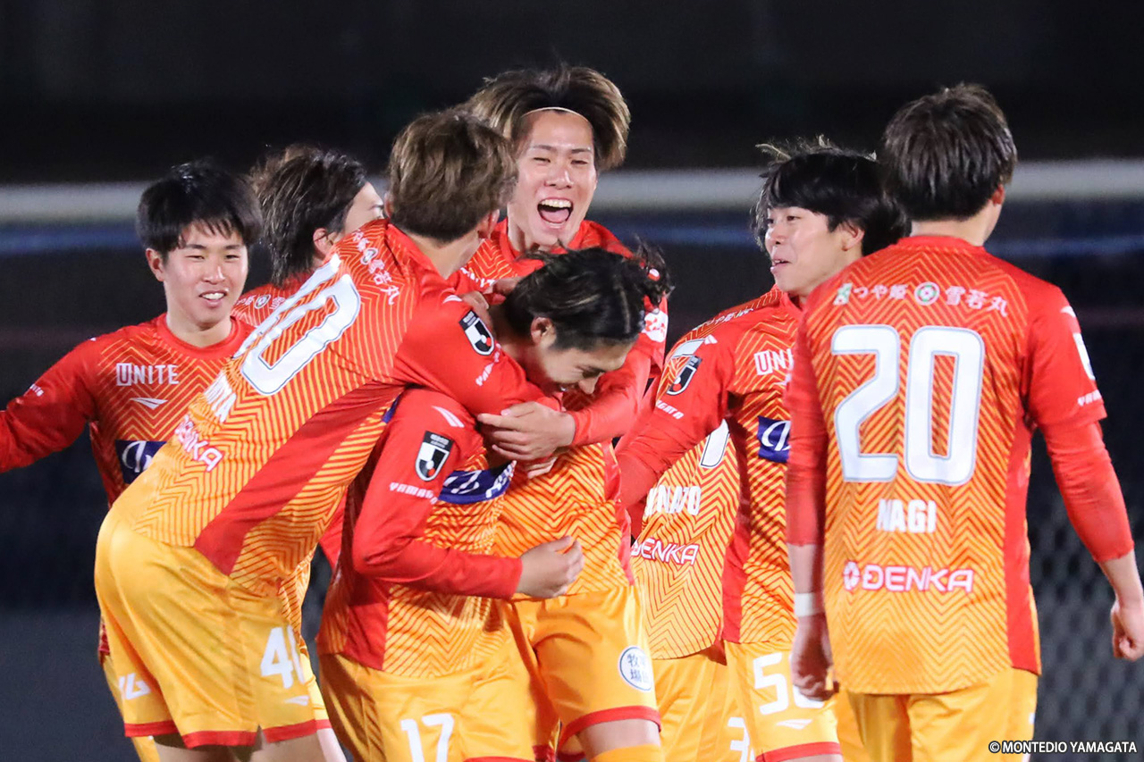 延長前半開始から押し込んだのは山形。すると92分、押し込んだ状態を作ると、狩野が中へ差し込んだボールを加藤がトラップ後、シュート。これが右隅に決まり、山形がようやく先制した。この直後には末木裕也、河井陽介と立て続けにシュートを打たれたが、いずれもGK長谷川洸がセーブして得点を許さなかった。