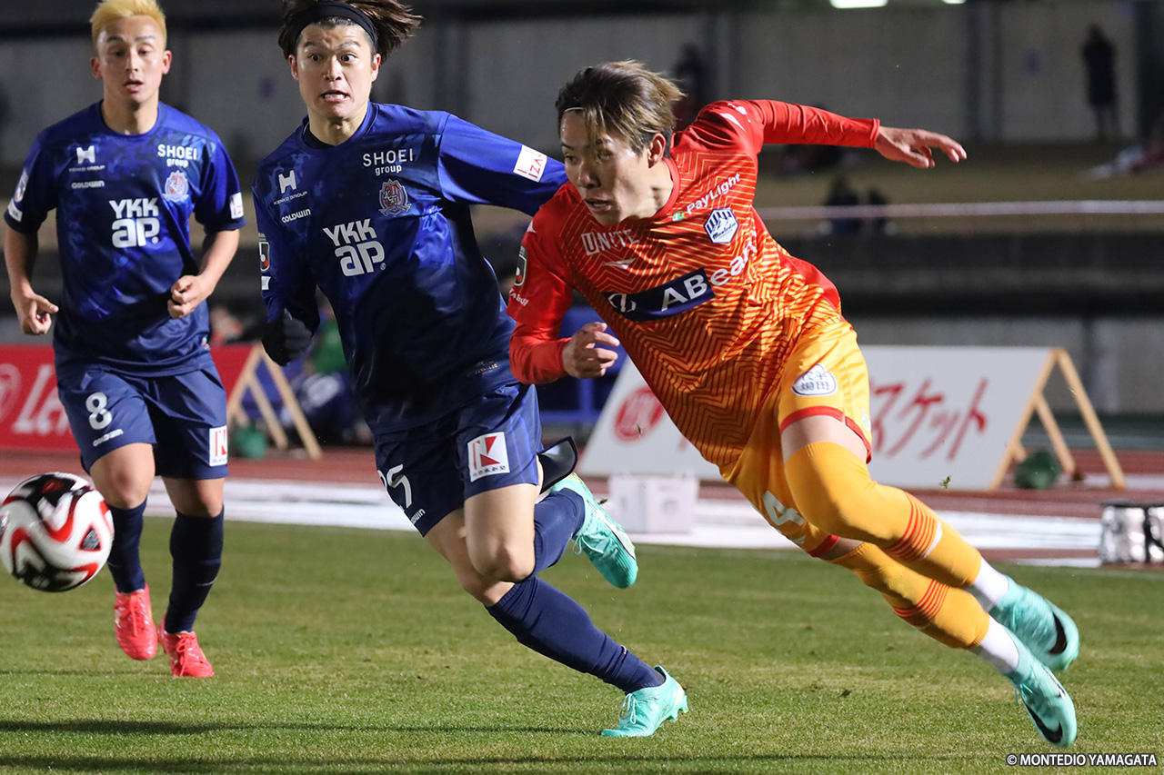 終盤には両チームに足をつる選手が続出するタフな戦いとなったが、山形は最後まで追いつくことができず、1-2で敗れて初戦敗退が決まった。