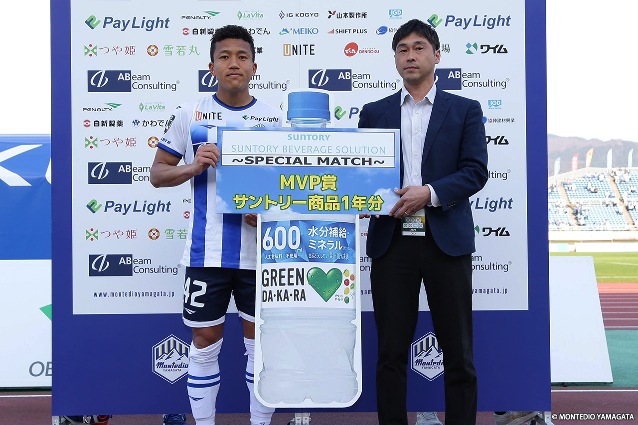 3連戦の3試合目となる今節、モンテディオ山形は5年ぶりのJ2を戦う鹿児島ユナイテッドFCをホームに迎えた。前半の序盤に先制すると終了間際に決定的な追加点を決めて2-0で勝利した。