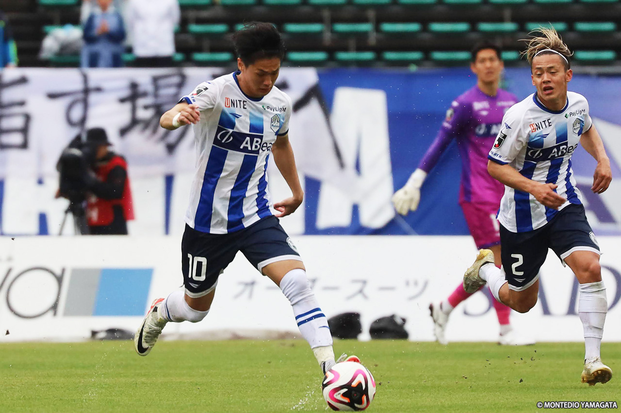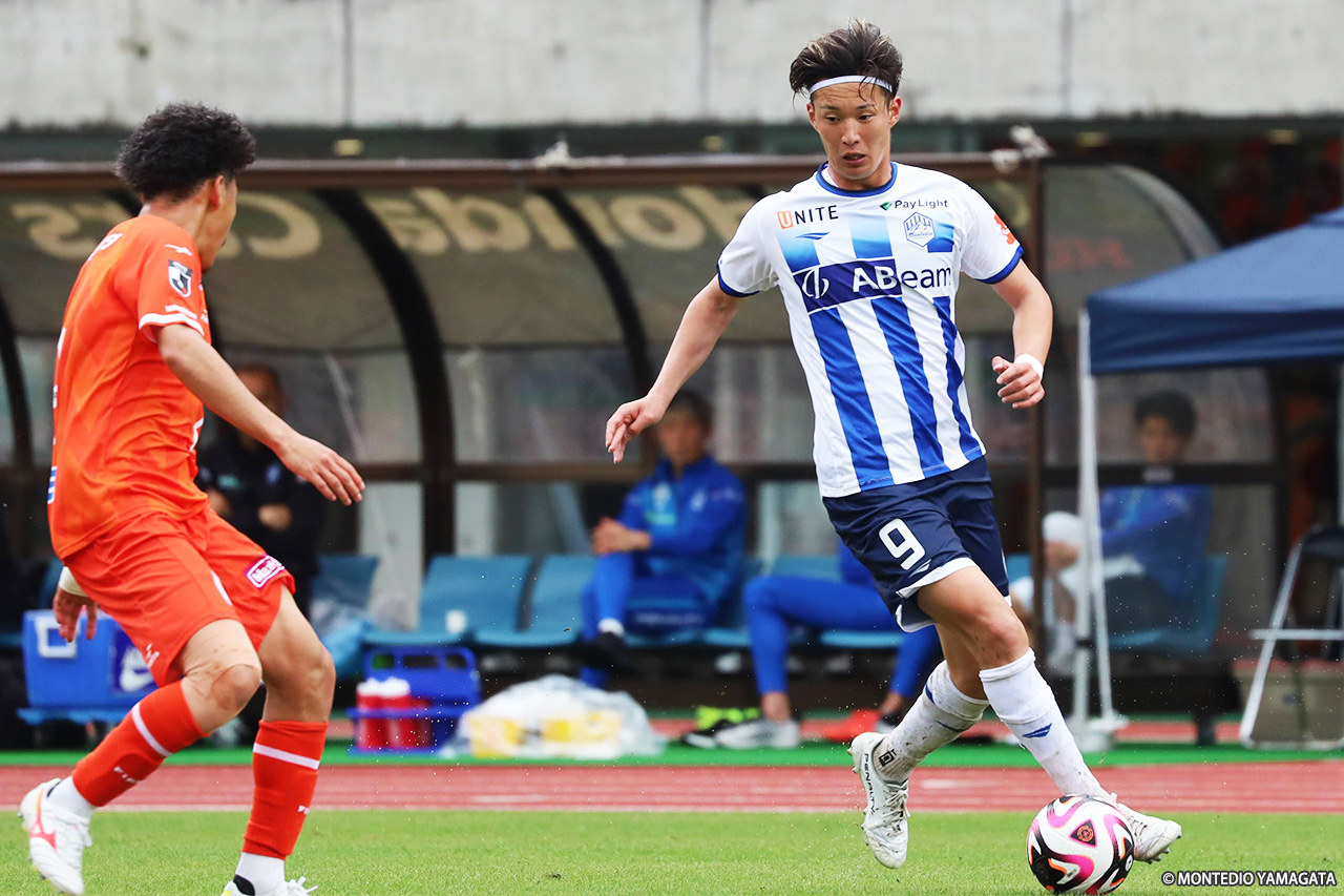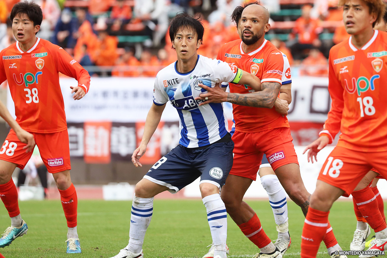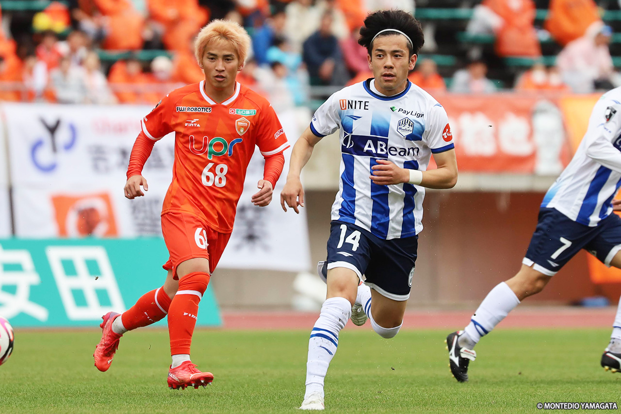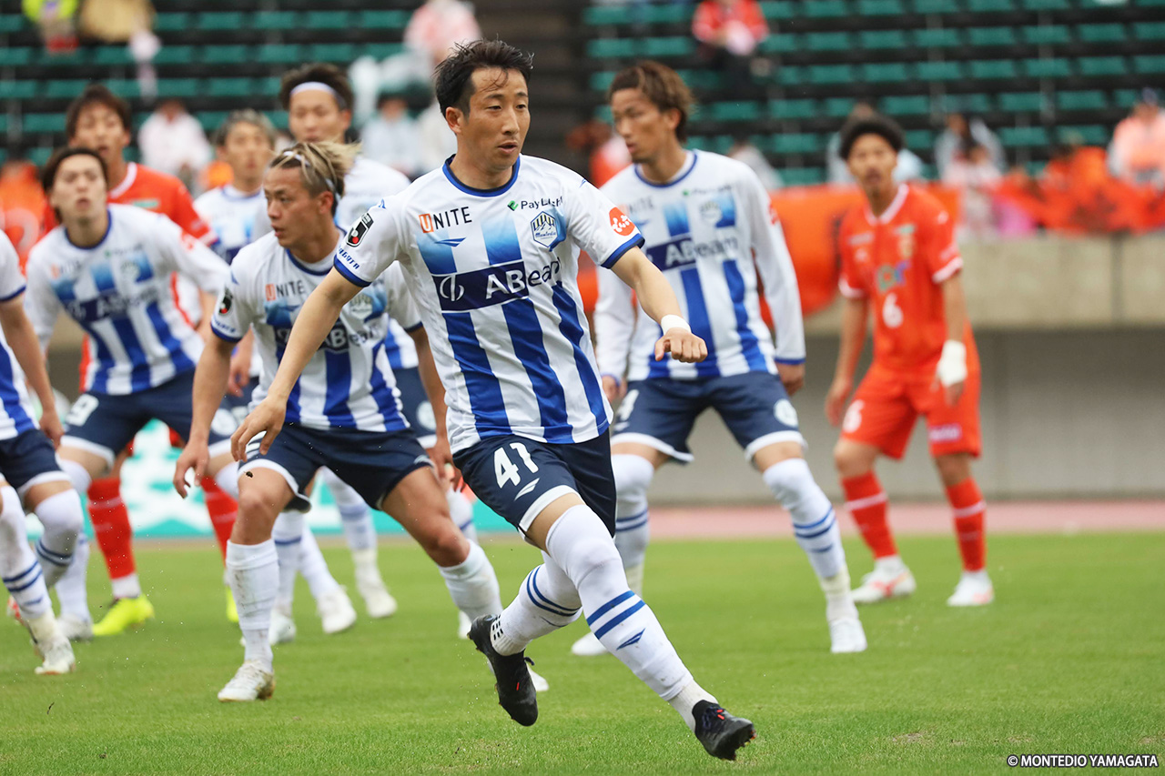 このチャンスをきっかけに攻撃の機会を増やしたい山形だったが、最終ラインの背後を狙う相手の攻撃への対応に苦慮し、なかなか流れを掴むことが出来ない。