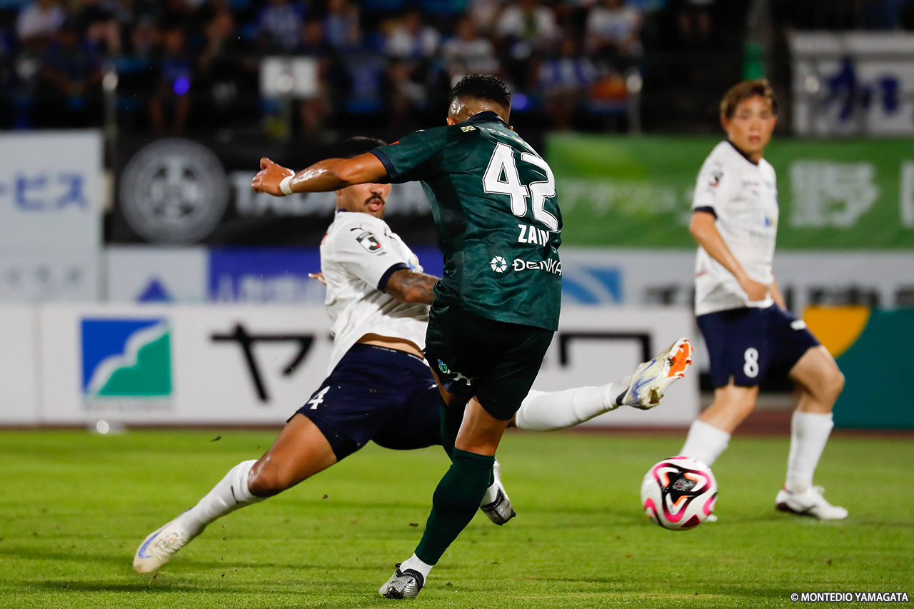 ここまで相手の猛攻を耐えていた山形だったが56分、山根からのスルーパスを斜めに走り込んだユーリララが受けてニアゾーンからクロス。これを髙橋利に高い打点のヘディングで合わせられ、同点とされた。