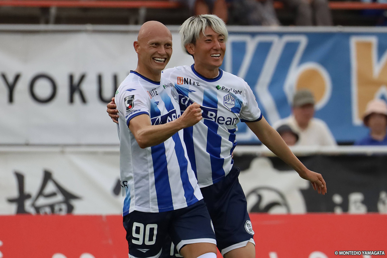 J1昇格プレーオフ圏内との勝点差『1』で8位につけるモンテディオ山形は、13位・ヴァンフォーレ甲府とアウェイで対戦。前半に先制点を奪い、一時追いつかれるも、後半に勝ち越し点を挙げて2-1で勝利、今季初の4連勝を達成した。