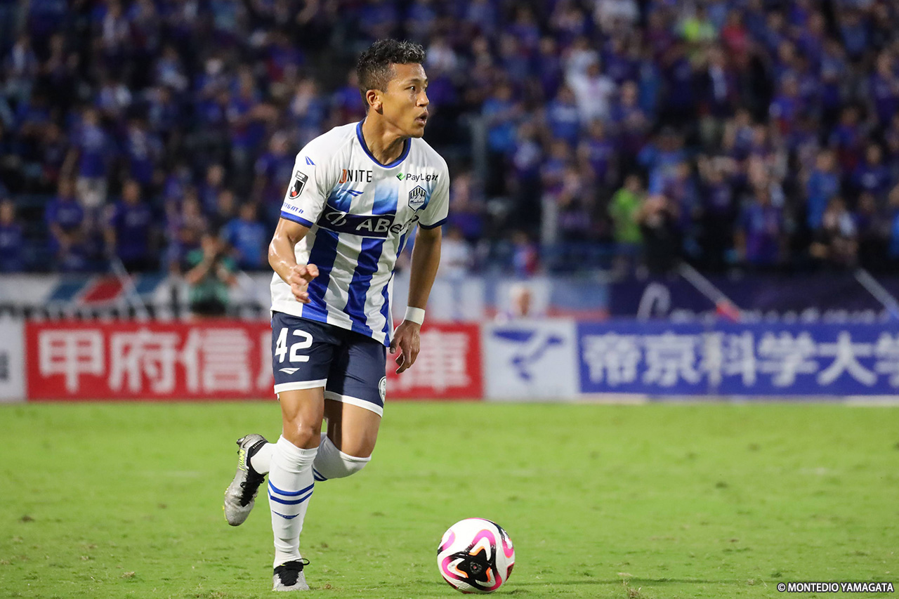 アディショナルタイムに入り、同点を目指す甲府に対し、山形は自陣で守備の時間が多くなったが、高橋や後藤優といった途中出場の選手がプレスを怠らず、甲府の攻撃を阻止。1点のリードを守り抜き、9月を全勝で終えた。