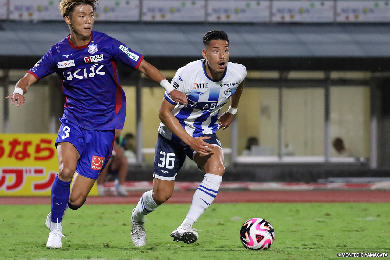 ヒヤリとした山形は33分、イサカゼインのクロスを渋谷が弾き、こぼれたボールを國分がボレーで詰めたが枠の上。その2分後には、土居の中央を割るスルーパスを、裏に抜け出したディサロが受けて決定機を迎えたが、飛び出してきた渋谷に阻まれた。
