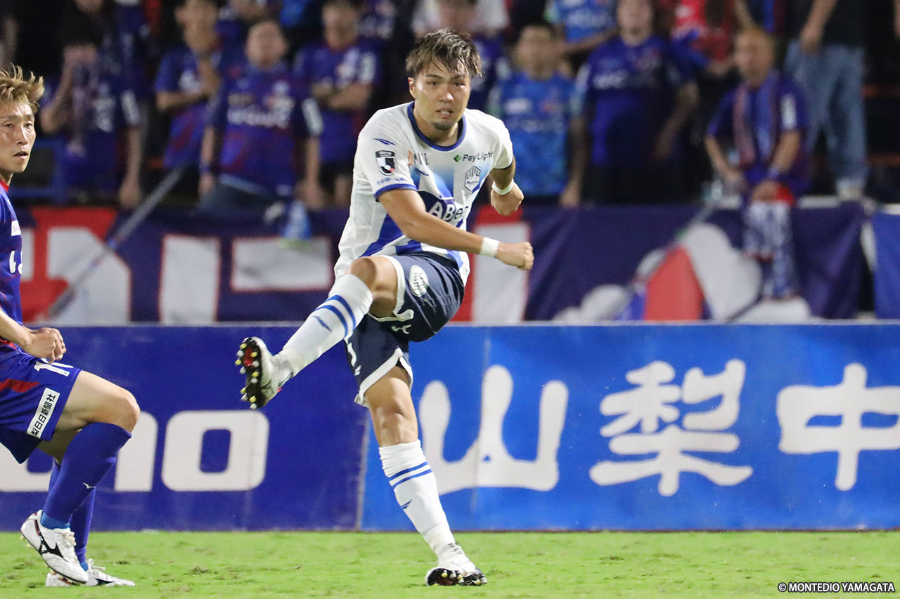 粘り強く守っていたが45分、甲府は三平の横パスを受けた三沢が運んでミドルシュート。ここは山形GK・後藤雅明が弾いたが、こぼれ球をウタカに拾われ、マイナスのパスを受けた飯田貴敬にニアを狙ったシュートを決められた。