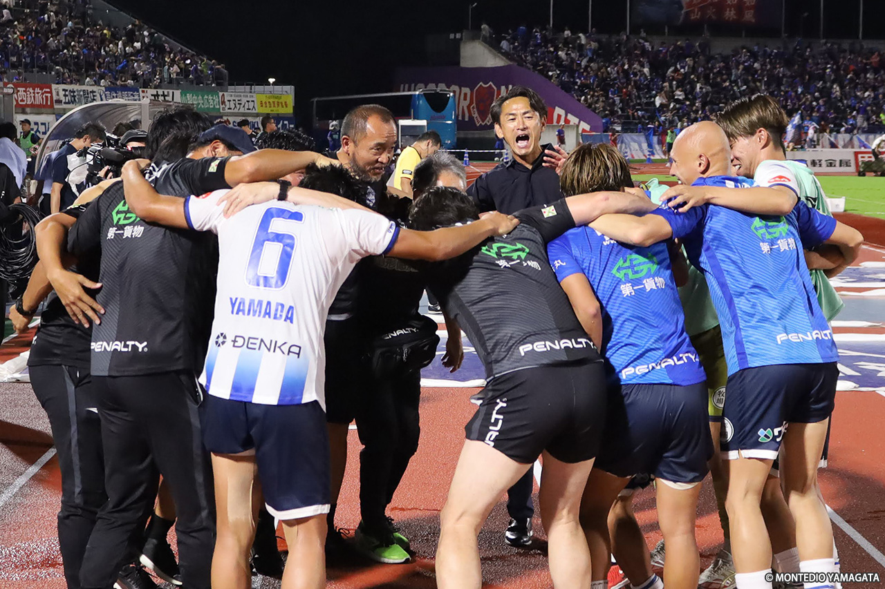 800人を超えるサポーターがこの小瀬に集まってくれたと聞いています。山形からは少し交通の便が良くないので、少し時間もかかるんですけども、その中でも大勢の方に来ていただけたことは本当に間違いなく、彼らのパワーが選手の足を動かしてくれたと思います。また中継の先からも我々にエネルギーを送っていただきました。本当にありがとうございました。