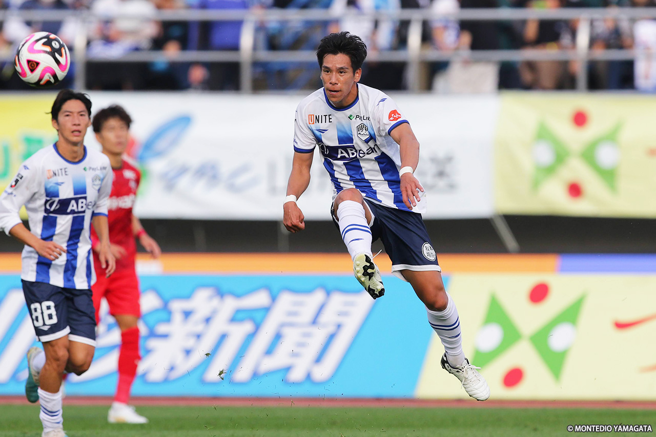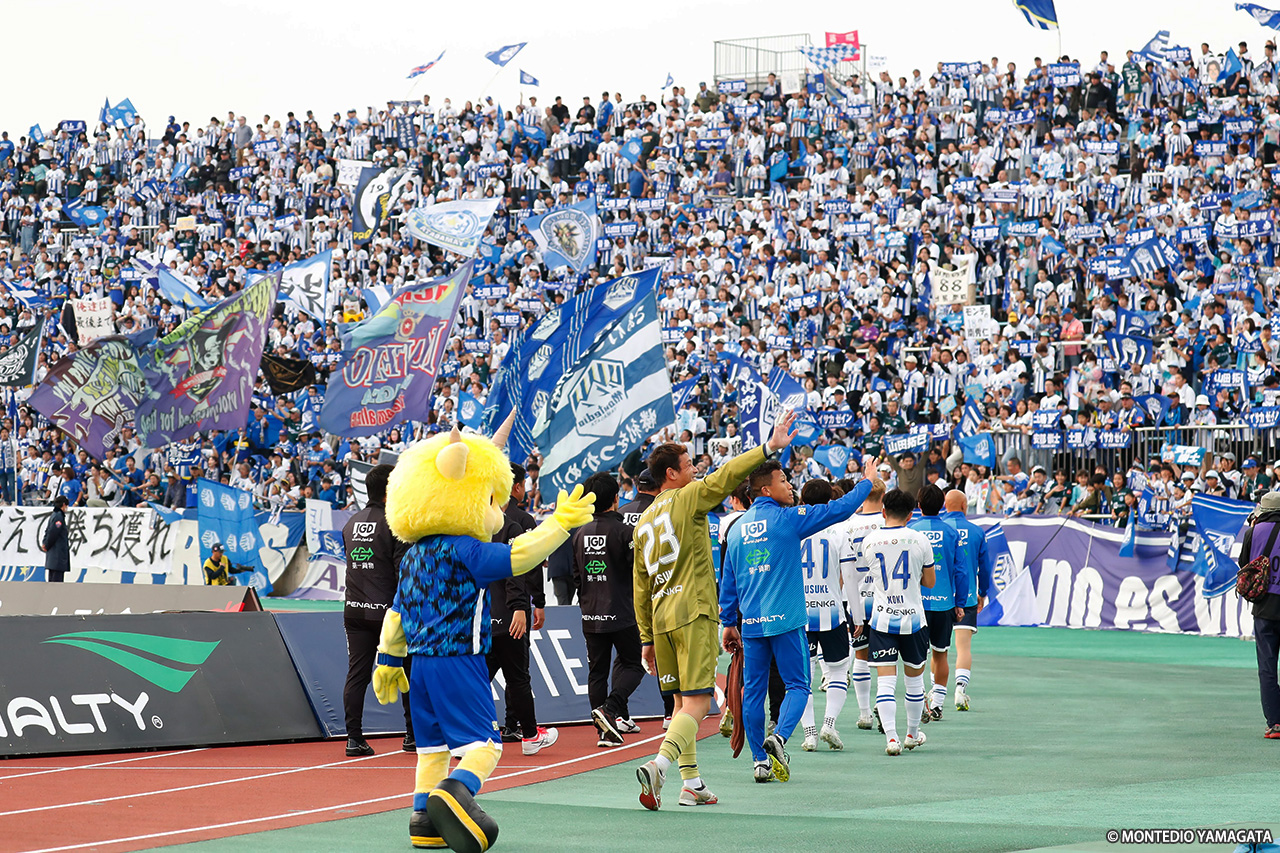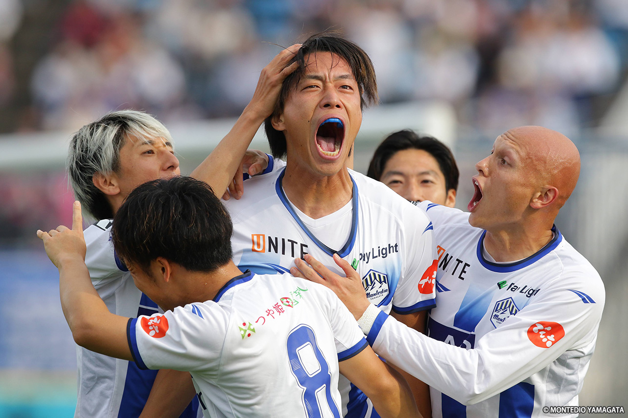 リーグ戦は残り3試合。現在6連勝中と勢いに乗るモンテディオ山形はホームに戻り、ロアッソ熊本と対戦。序盤にCKから挙げた1点を守り切り、クラブ記録に並ぶ7連勝を達成した。