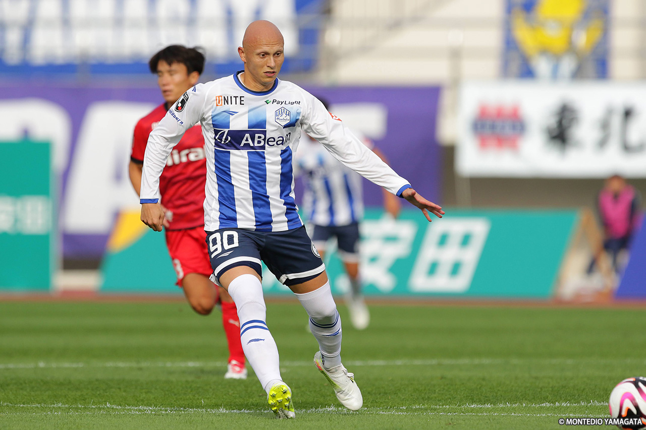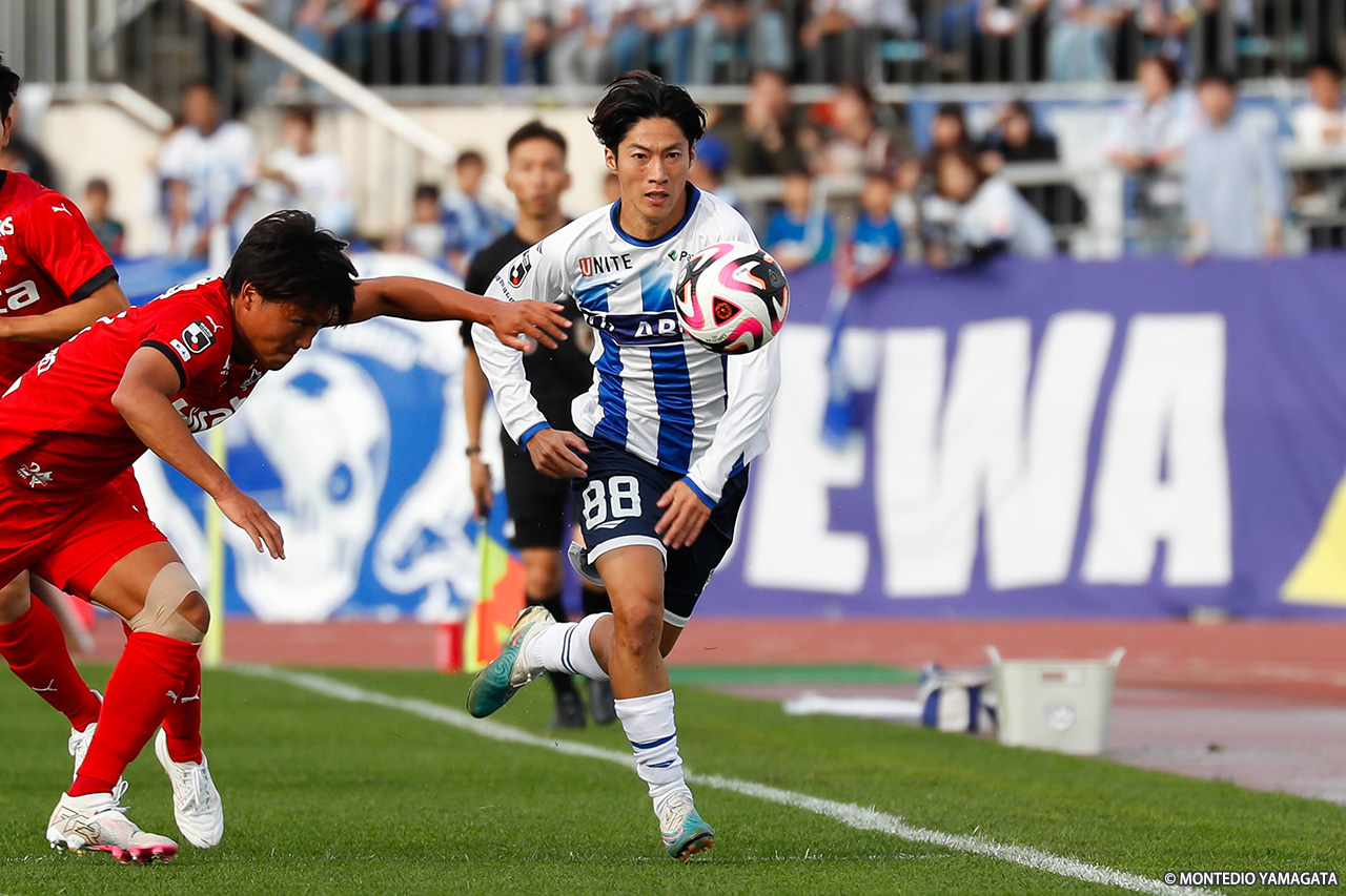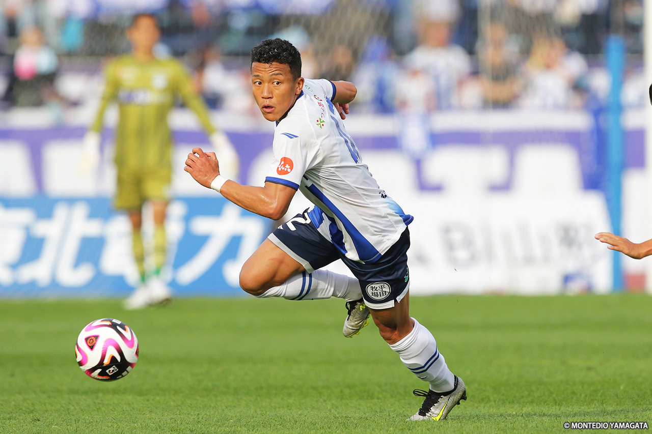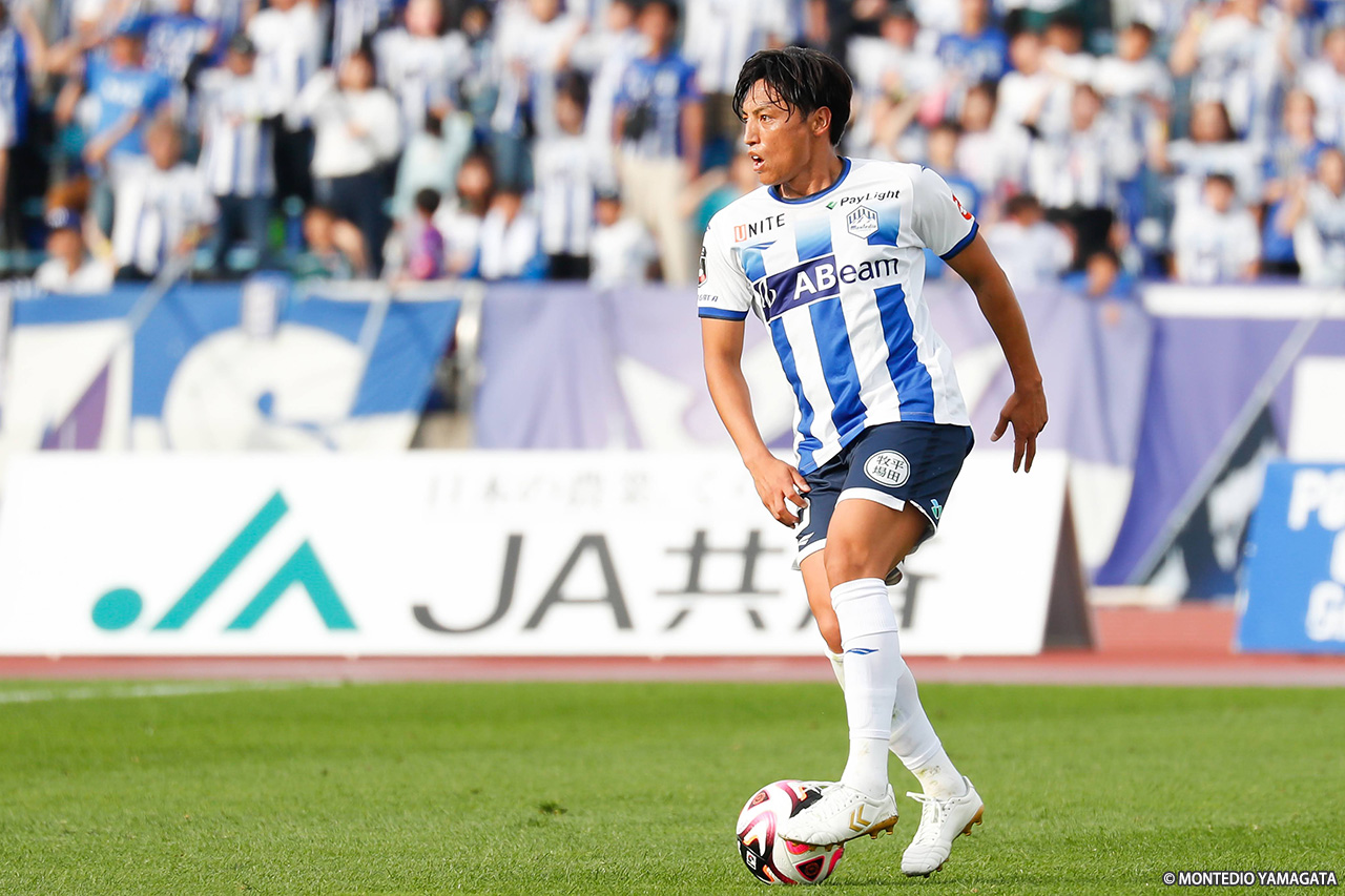 リーグ戦は残り3試合。現在6連勝中と勢いに乗るモンテディオ山形はホームに戻り、ロアッソ熊本と対戦。序盤にCKから挙げた1点を守り切り、クラブ記録に並ぶ7連勝を達成した。
