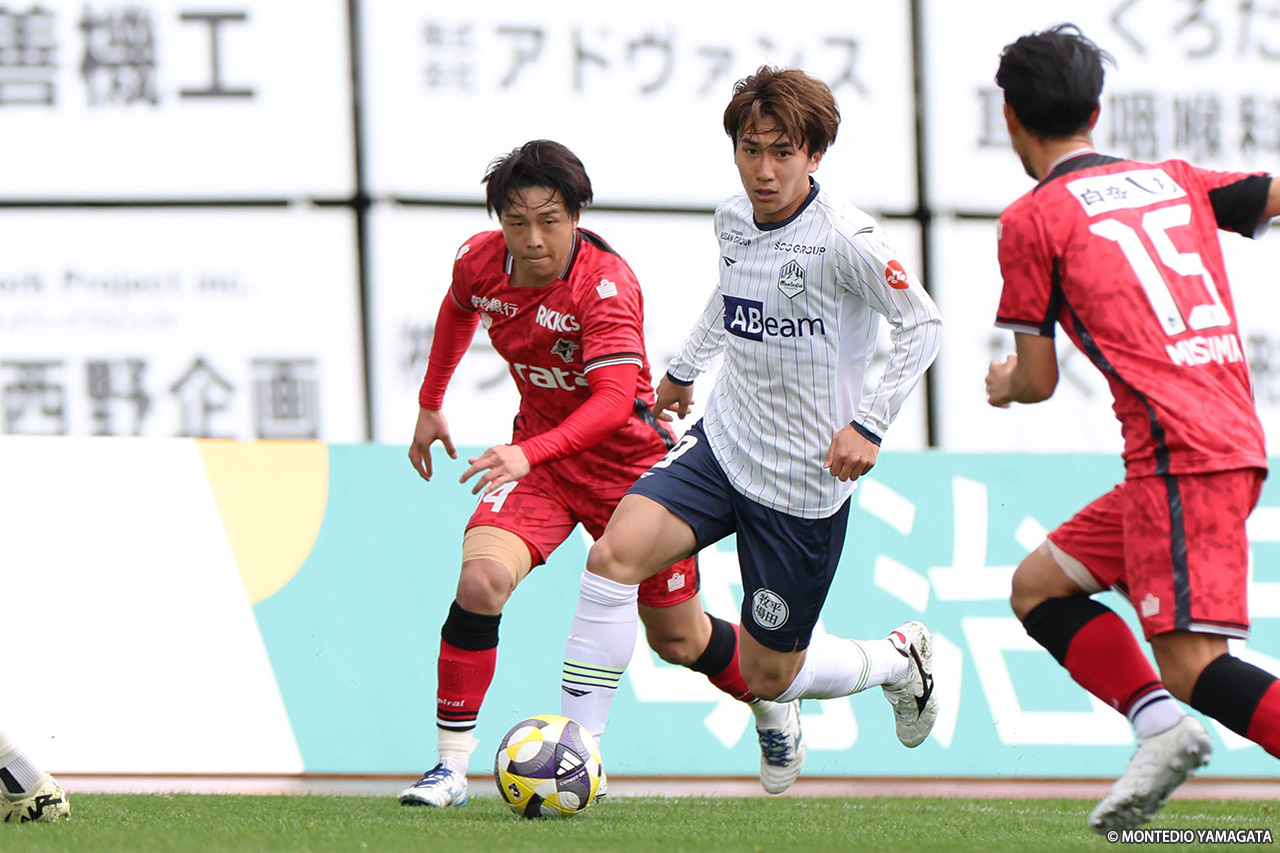 63分、中盤でボールを奪われると大西のクロスが塩浜へ通ってピンチとなったが、安部崇士がスライディングでボールを奪い、シュートを許さず。その3分後には、山形の左サイドを深く突破した渡邉怜歩の折り返しを三島頌平に合わせられたが、西村慧祐が足を出してブロックした。