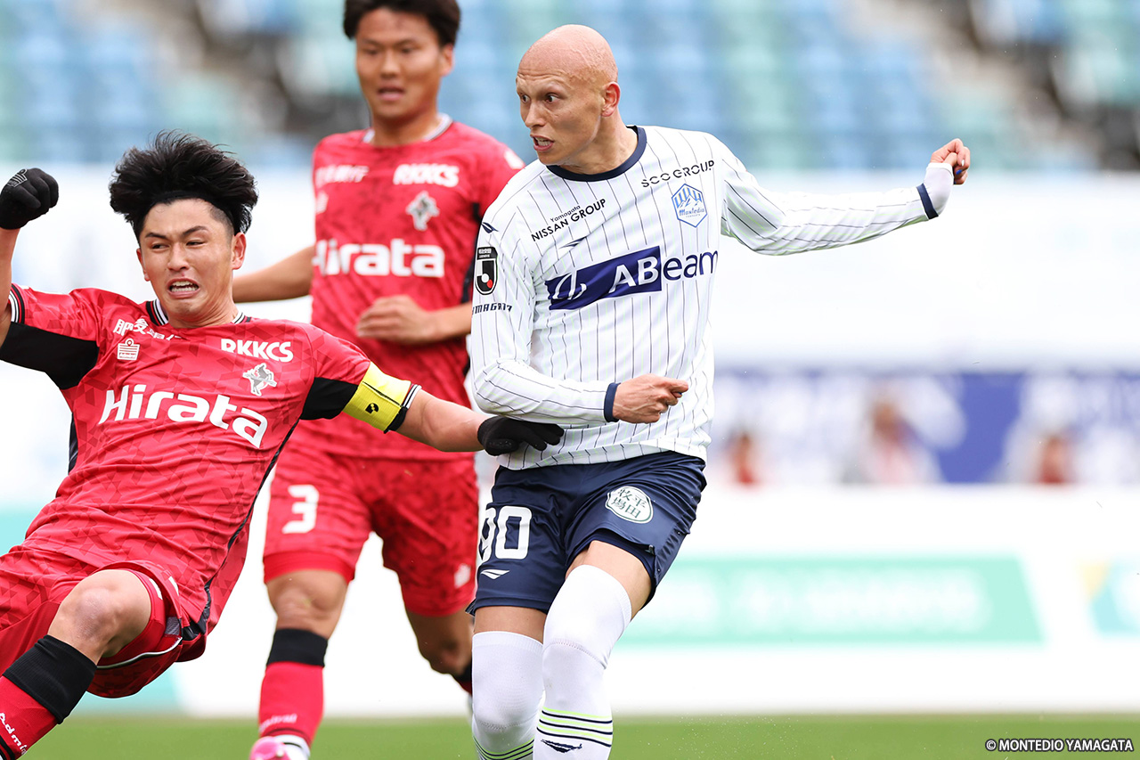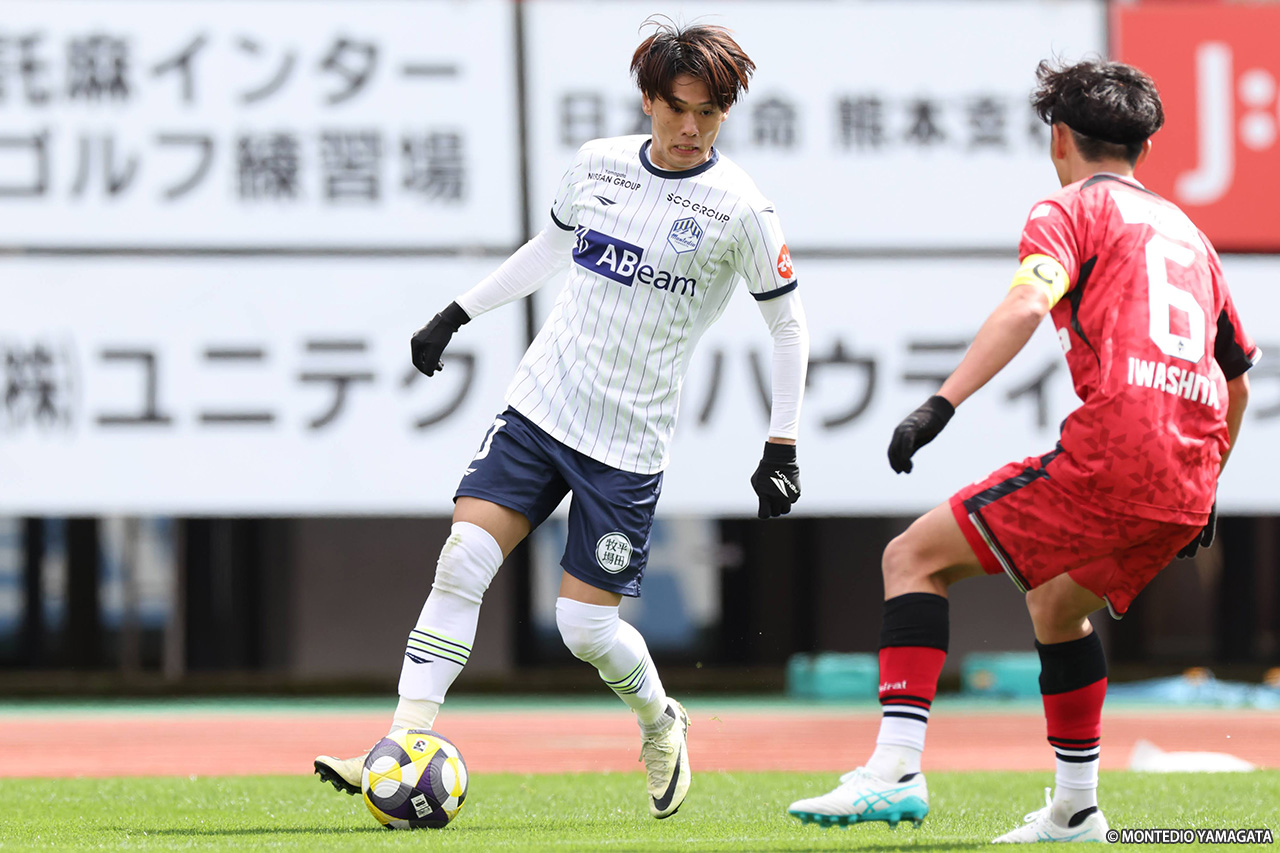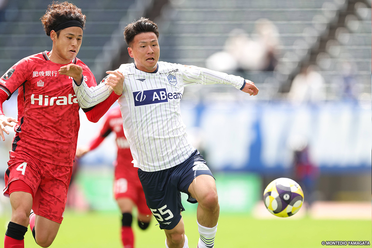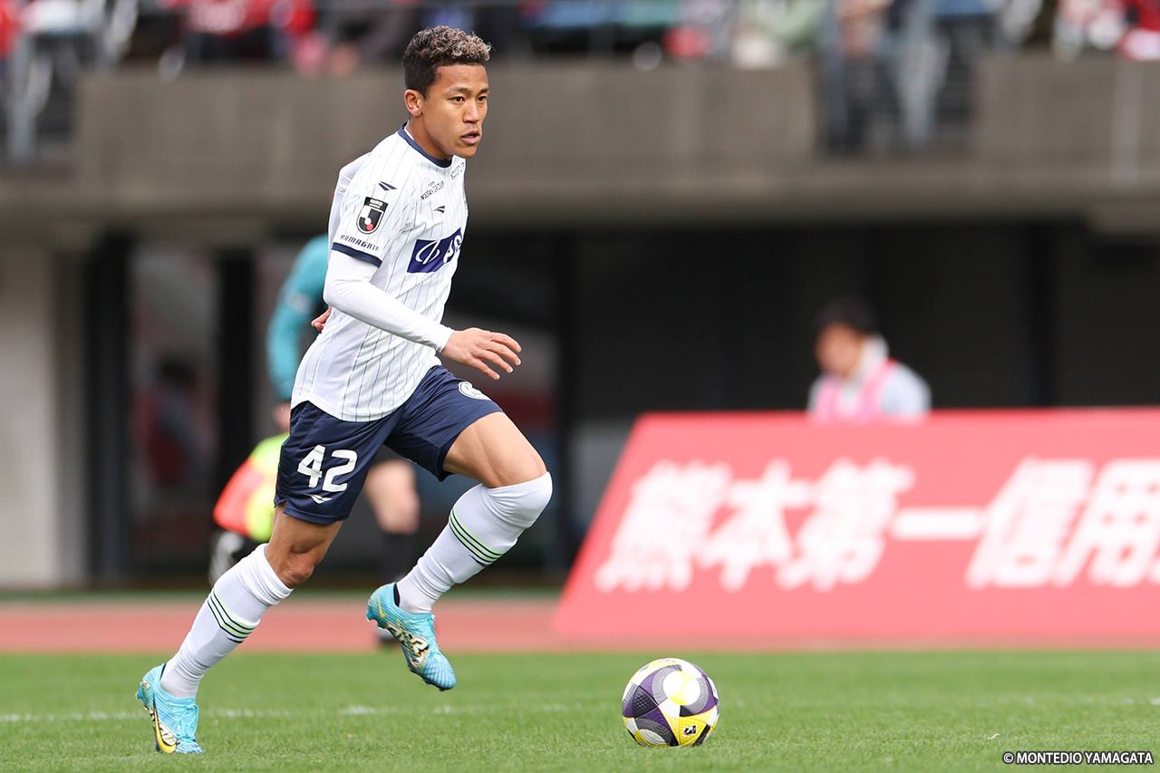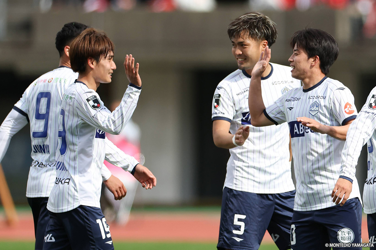 前節のホーム開幕戦で、待望の今季初勝利を挙げたモンテディオ山形は、連勝をかけてロアッソ熊本とアウェイで対戦。前半に先制し、一時は追いつかれるも終盤に2ゴールを挙げ、3-1で勝利した。