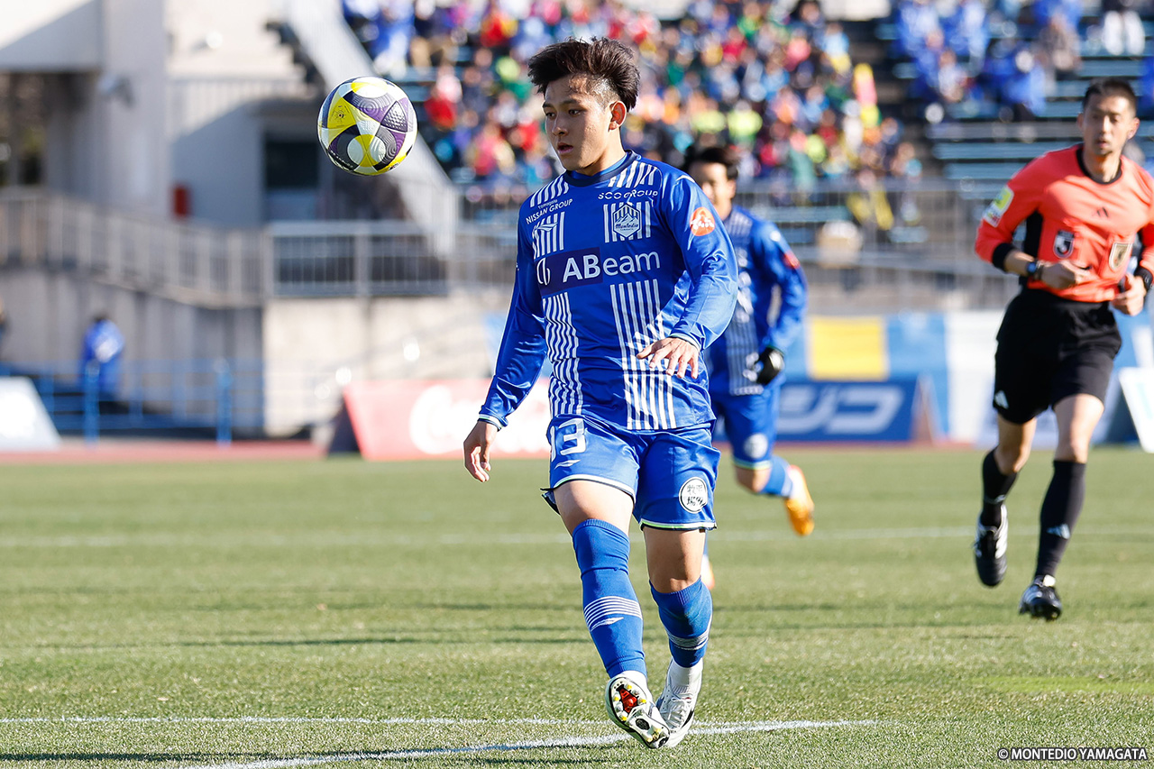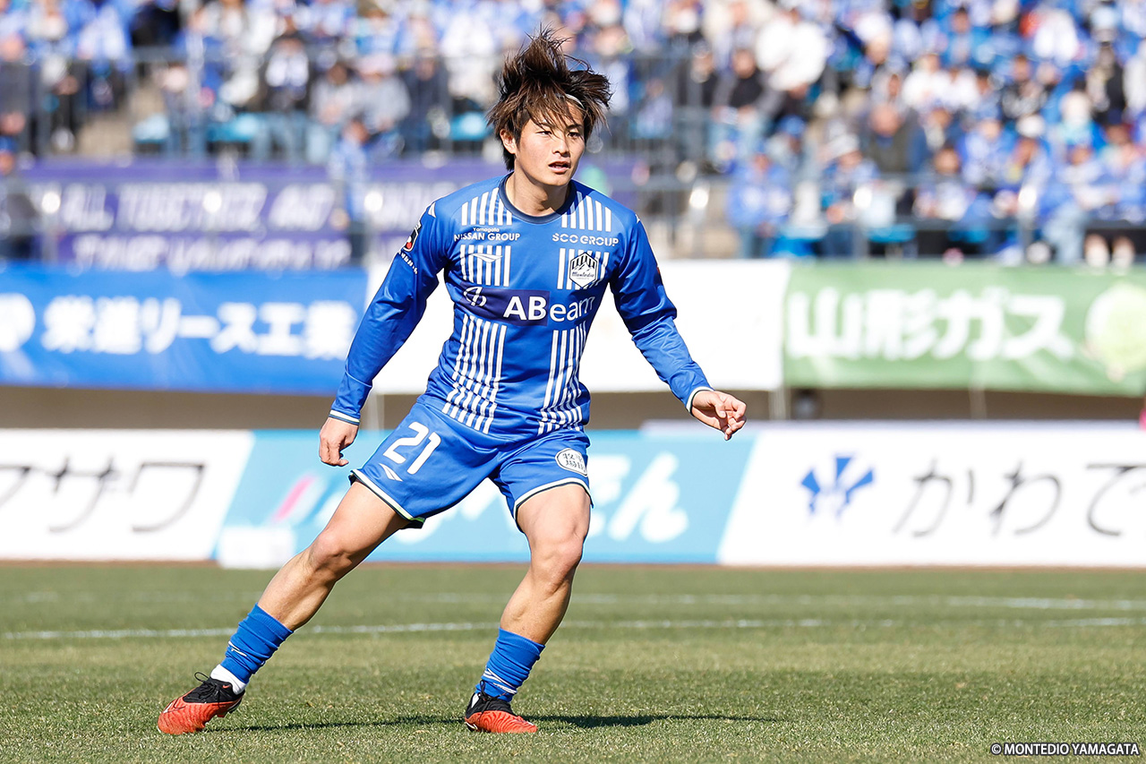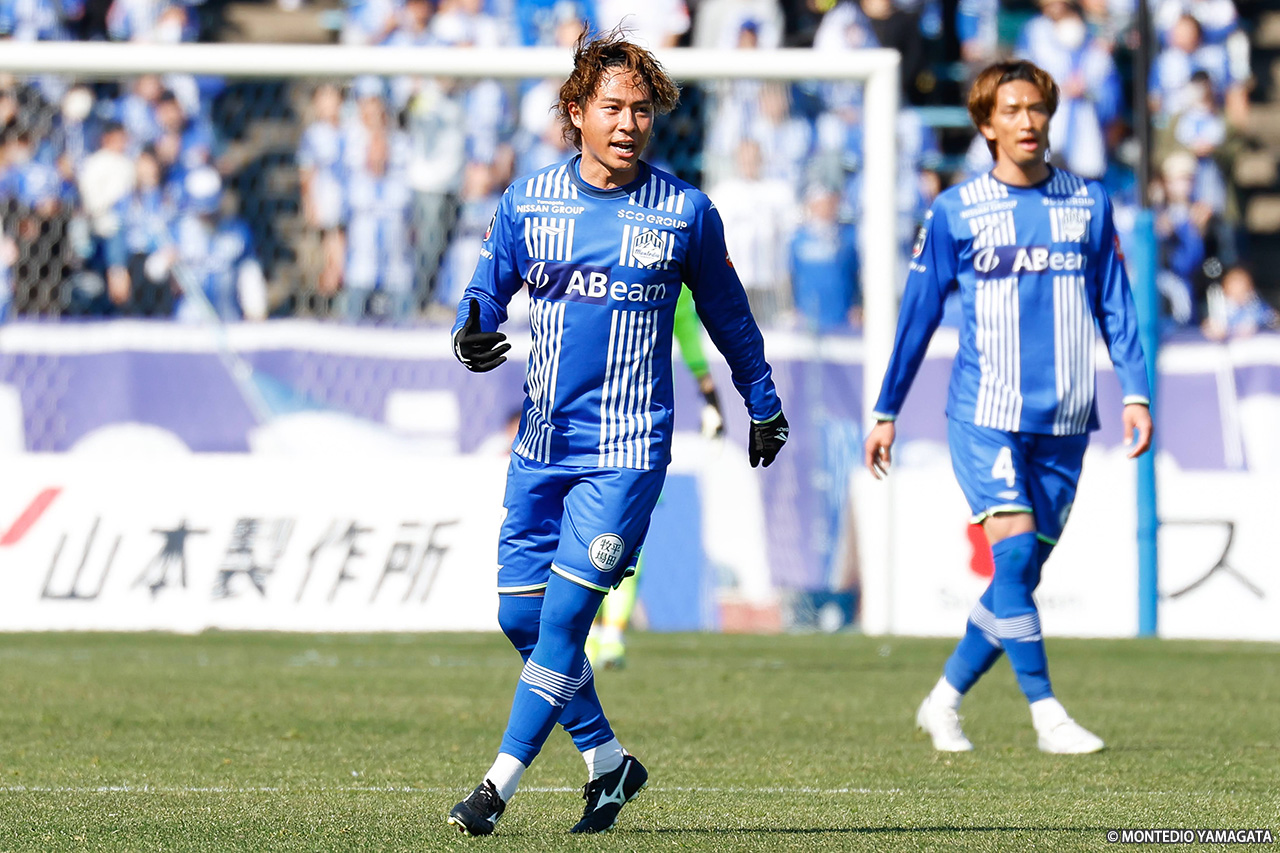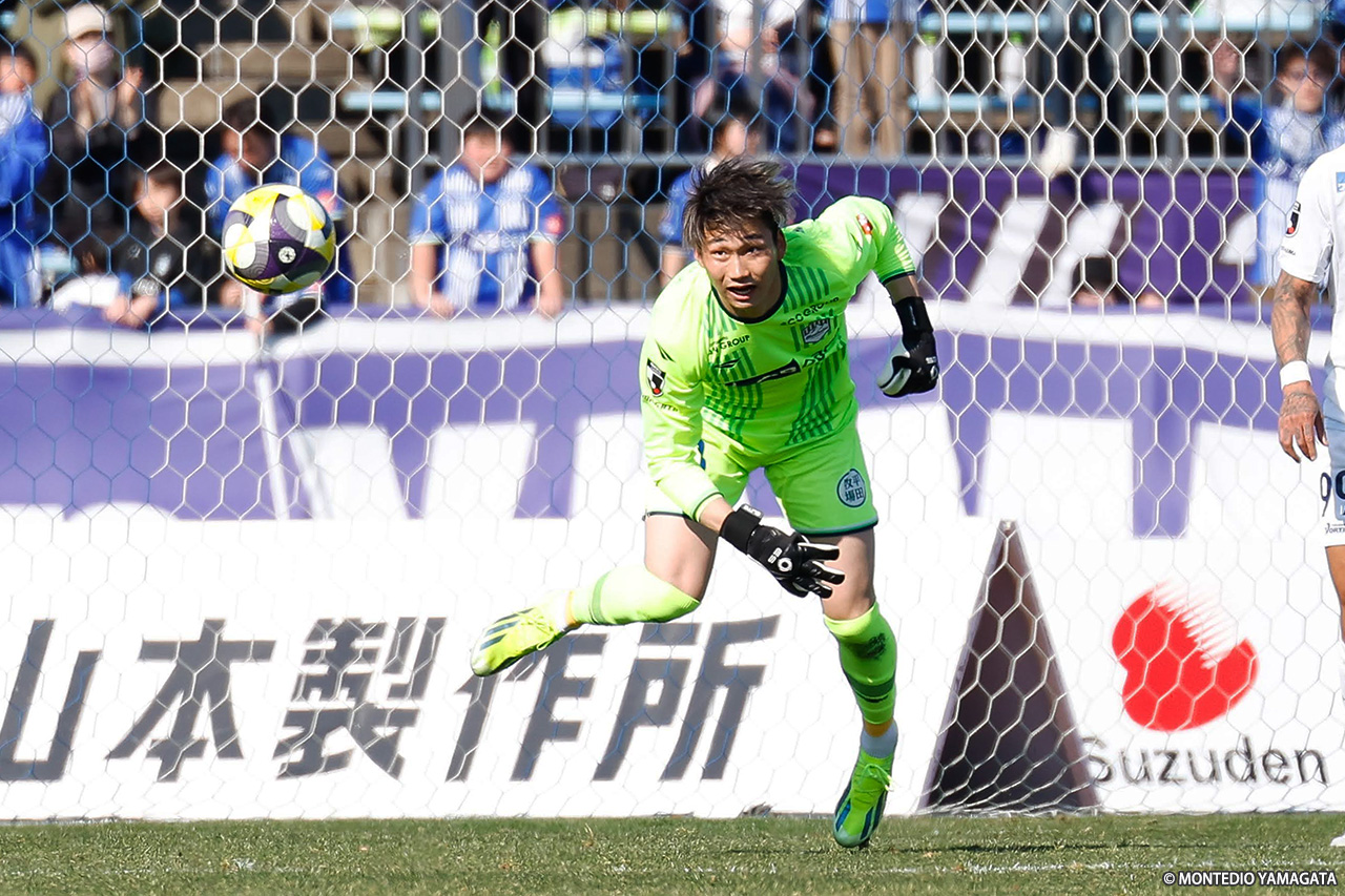 形勢逆転を許すも耐えた山形は前半終了間際、田中渉のサイドチェンジを氣田が受けてクロス。堀金が下がりながらヘディングで合わせたが枠を捉えられず、直後に前半終了の笛が吹かれた。