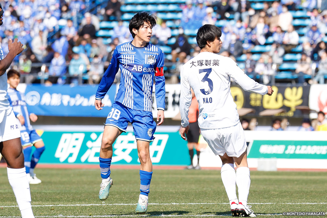 後半の立ち上がりは山形が右を起点にチャンスを複数作り、48分、氣田が中盤の位置から斜めにドリブル突破し、左の國分伸太郎へ。左足で狙ったが徳島GK・田中颯に抑えられる。56分には、髙江の縦パスを堀金がフリックし、抜け出した氣田が受けてグラウンダーのクロス。土居聖真が待っていたが、手前でカットされた。