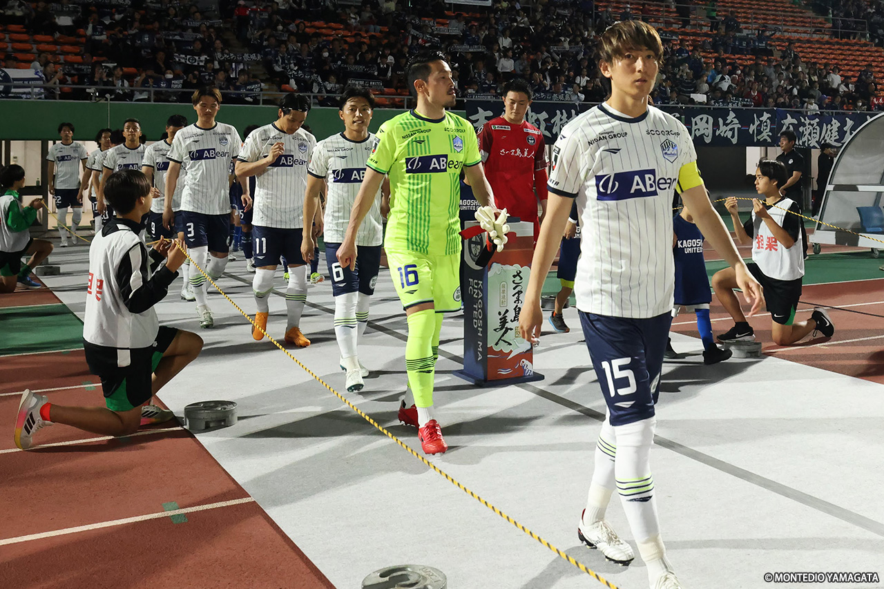 直近のリーグ戦から先発全員を入れ替えた山形は、離脱者が多く人材が薄いボランチには加藤千尋と吉尾海夏を起用。ベンチにはリーグ戦・徳島戦に続いてベカ ミケルタゼ、今季初メンバー入りの大森真吾などが入った。ゲームキャプテンは、この試合で今季初先発・初出場となる川井歩が務めた。