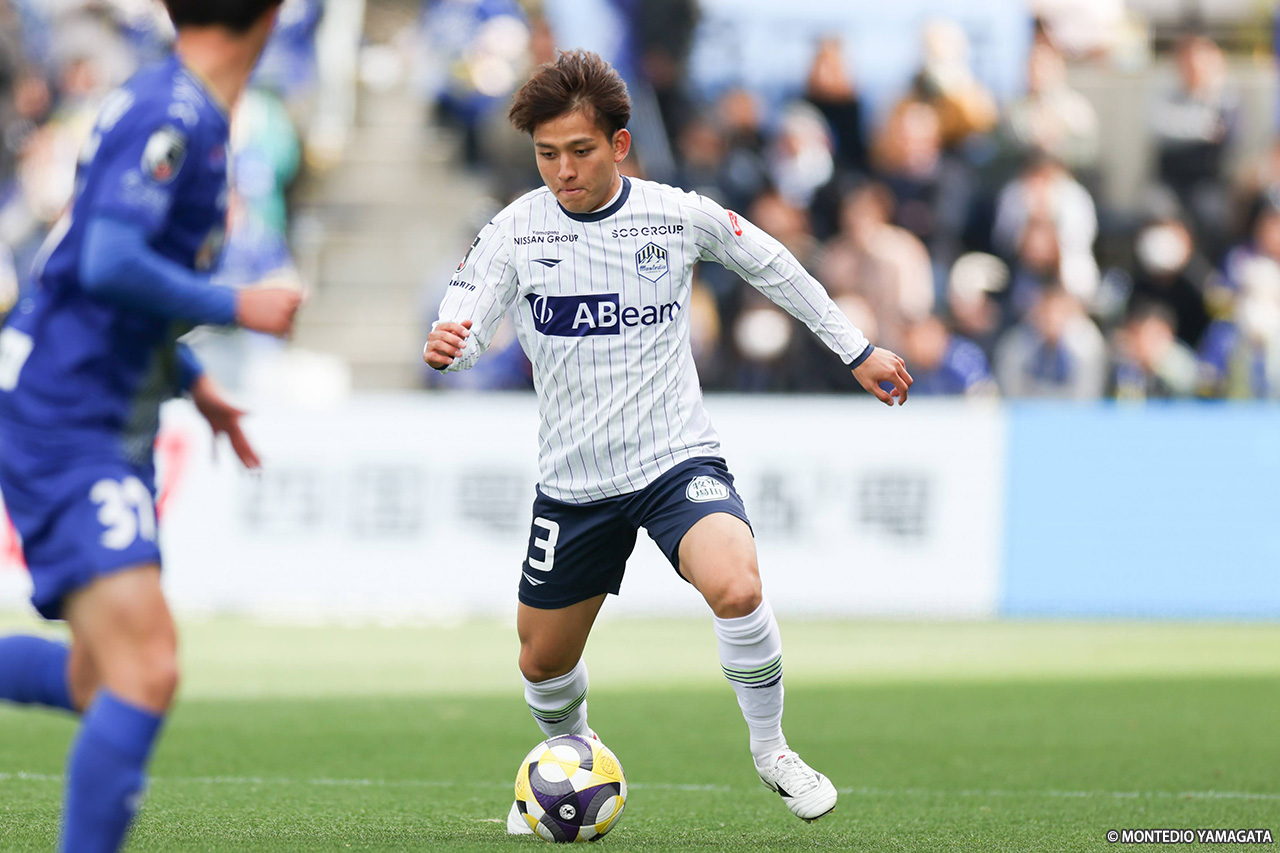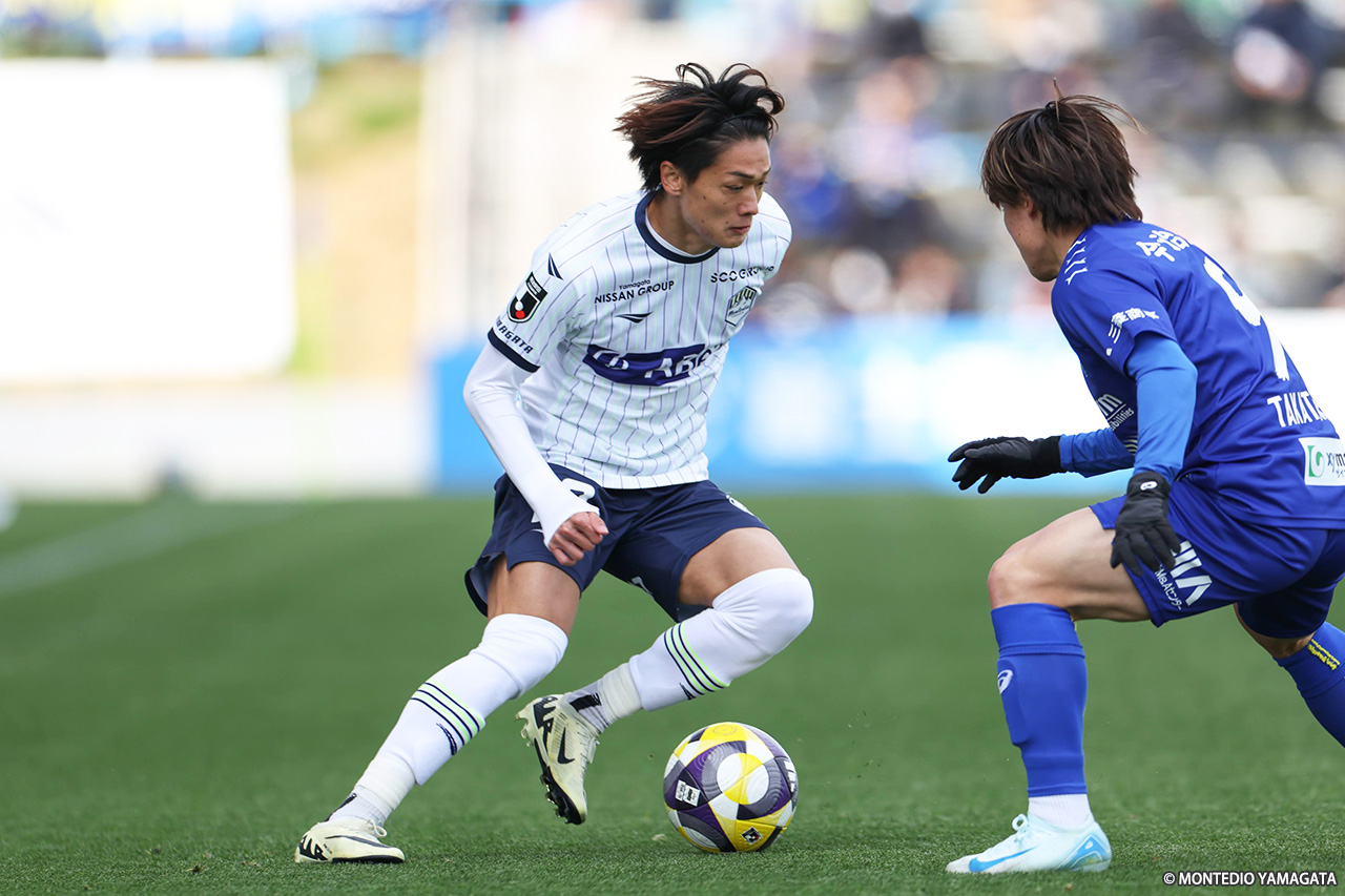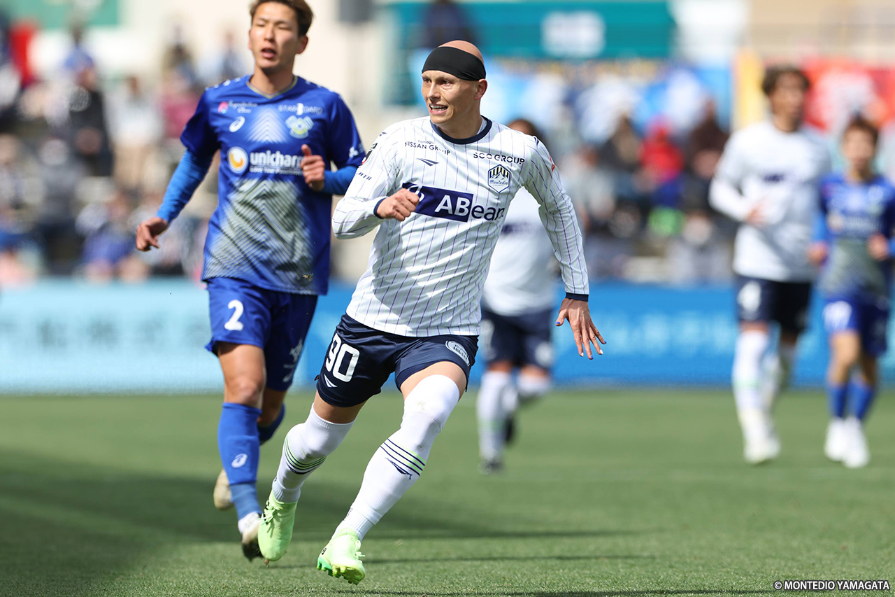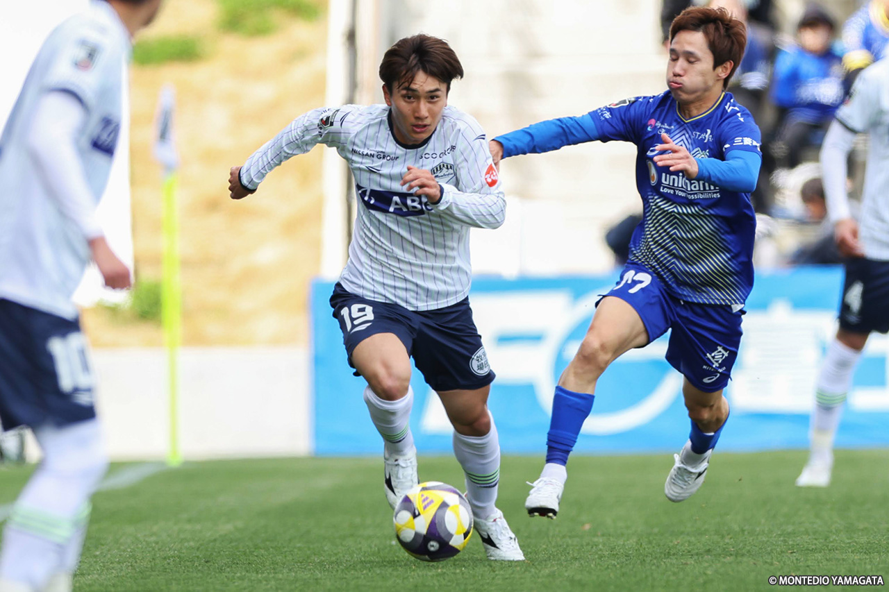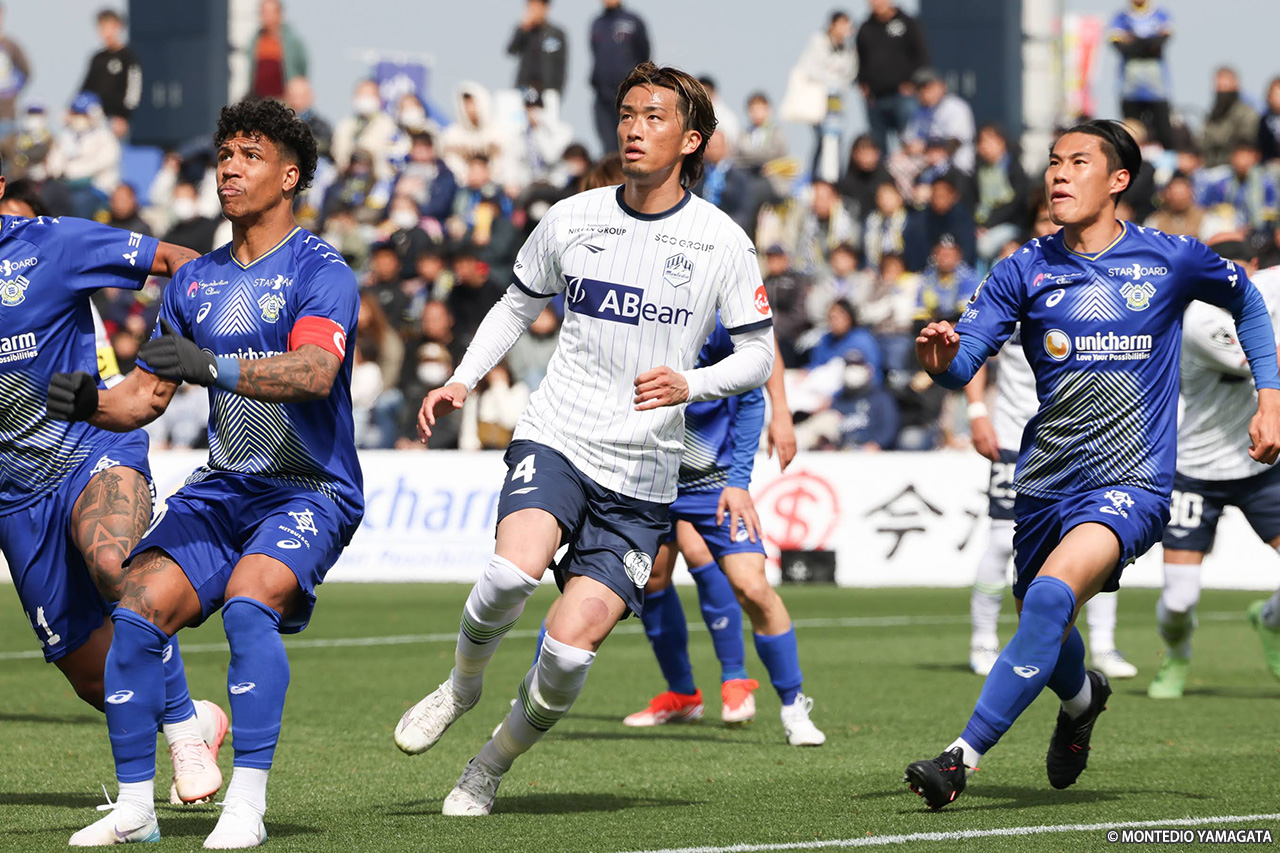 1点差とされた3分後、自陣でのパスミスを加藤潤也にカットされて折り返しをマルクスヴィニシウスにヒールで合わせられ、決定機を許したが山形GK・寺門陸が好セーブ。64分には、リズム良くパスを繋がれて最後は梅木にシュートを許したが、野嶽寛也がスライディングブロックで防いだ。