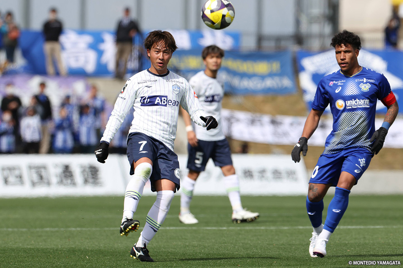 直近のルヴァンカップ初戦で完封勝利を挙げたモンテディオ山形は、その試合から中3日でFC今治と対戦。幸先よく2点を先攻するも、後半は終了間際を含めて2失点を喫してリードを守りきれず、痛いドローに終わった。