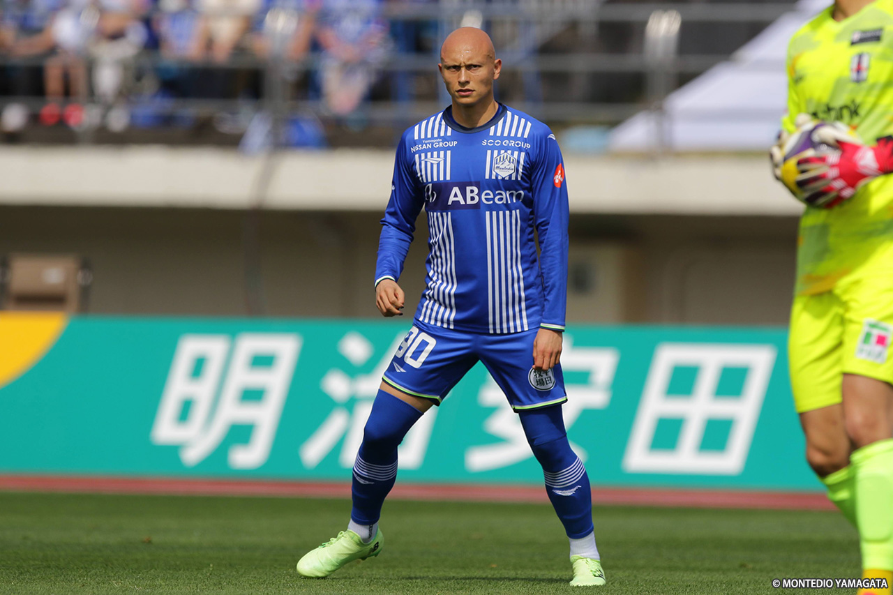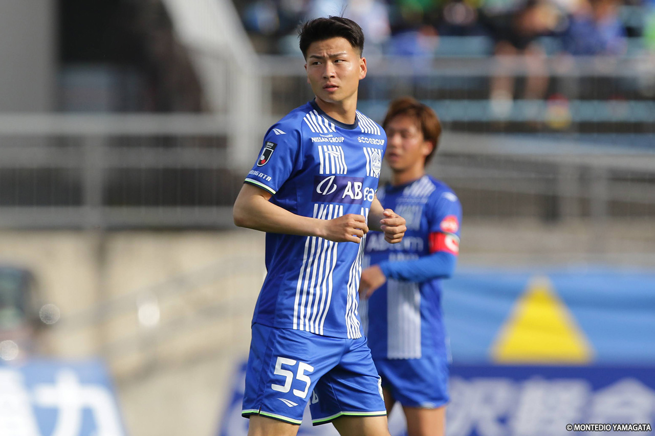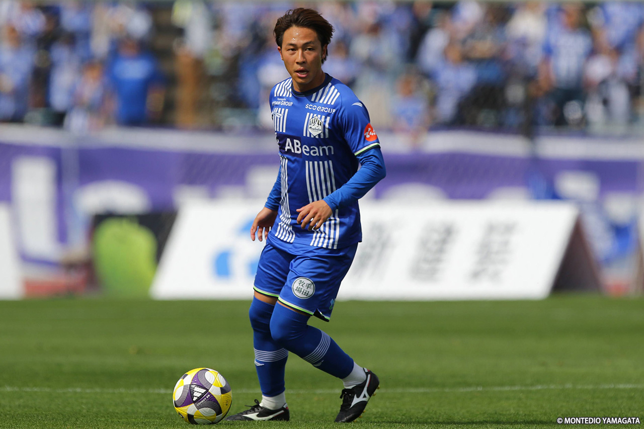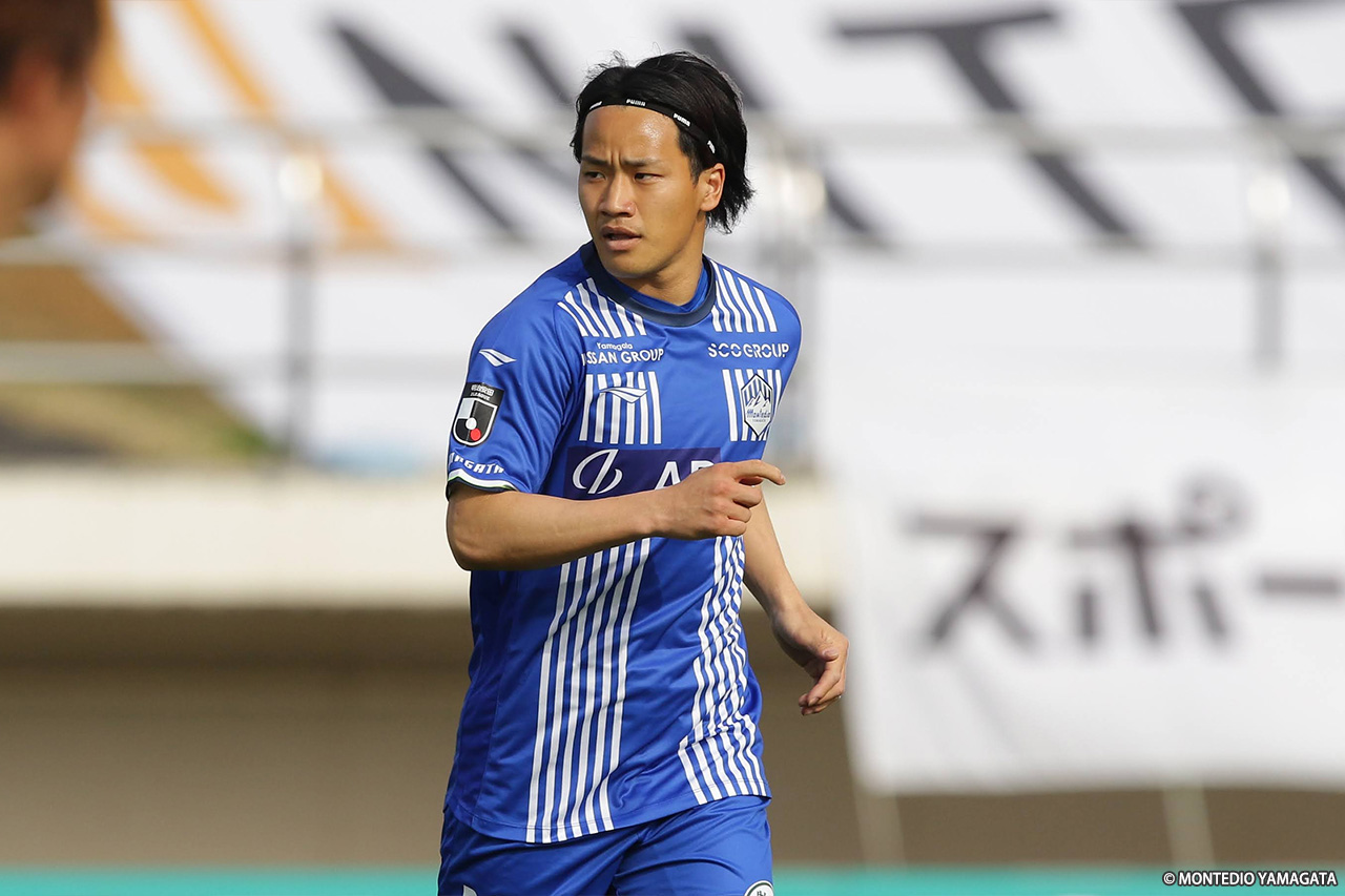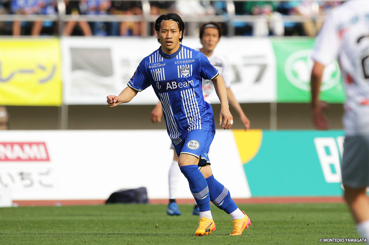 前半の終盤、山形は中央突破から好機を演出し42分、髙江が田中とのパス交換からボールを運び、中央を割るパスを入れるも、ディサロ燦シルヴァーノには通らず。その2分後には、田中がコントロールショットを放ったが、GK・辻の好セーブに阻まれた。