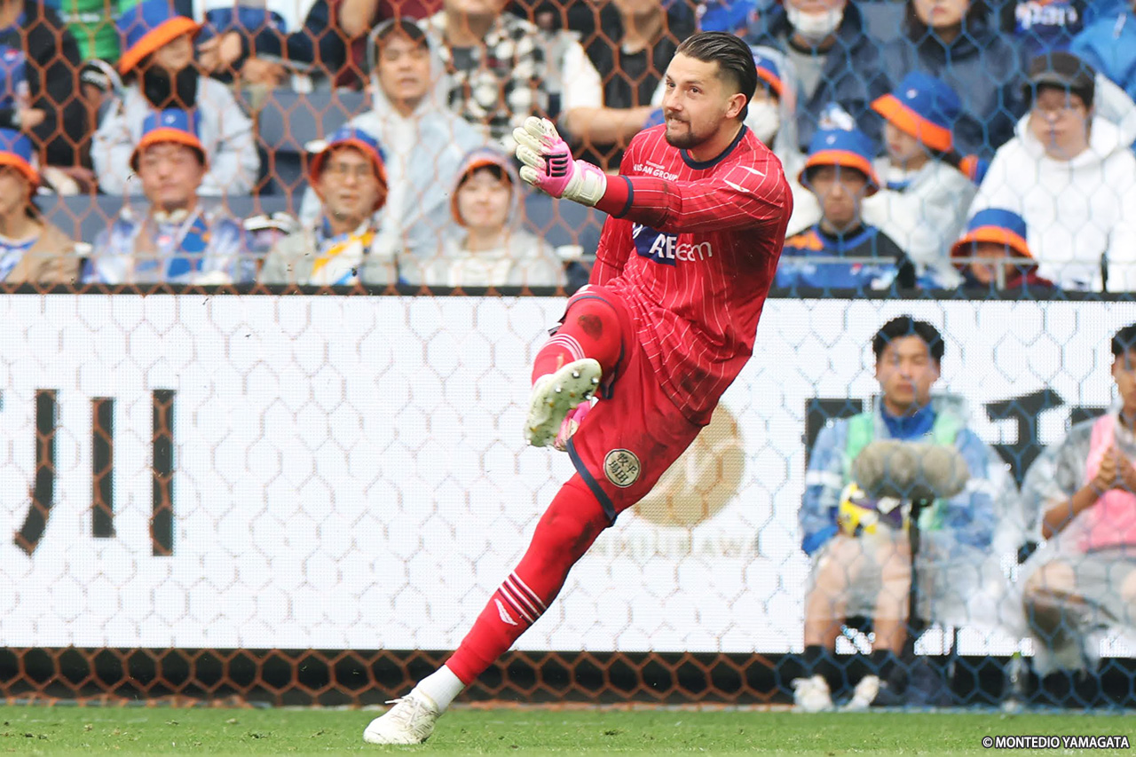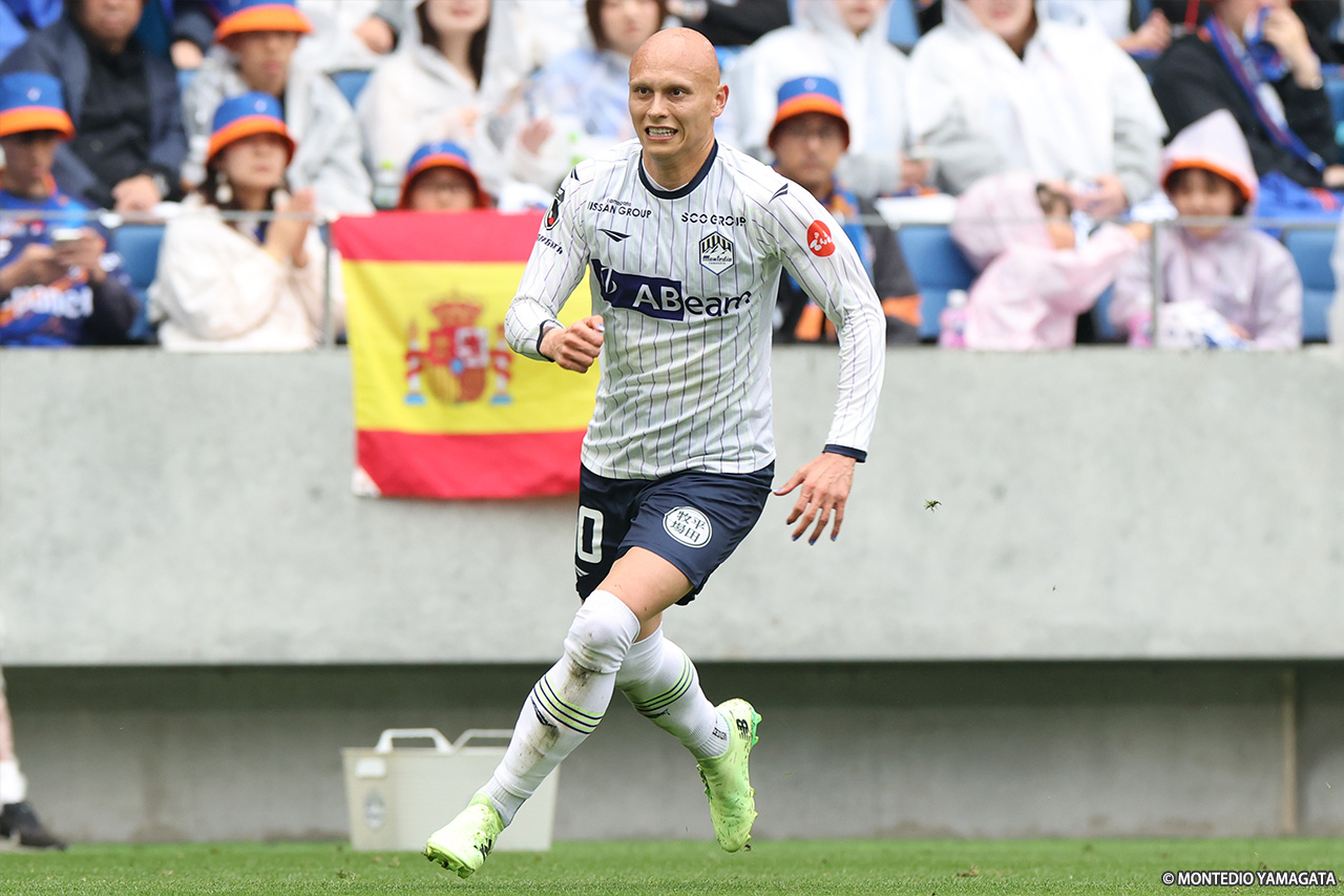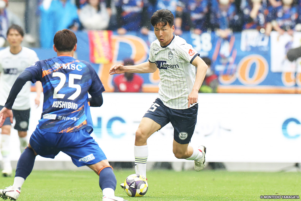 前節、5試合ぶりの勝利を挙げた11位・モンテディオ山形は、5連戦のラストとなるゲームで10位・V・ファーレン長崎と対戦。昨年10月に開業したピーススタジアムに初めて乗り込み、連勝を狙った一戦は開始早々に先制し、後半には数的有利の状況となるも、ラストプレーで追いつかれて勝点1の獲得にとどまった。