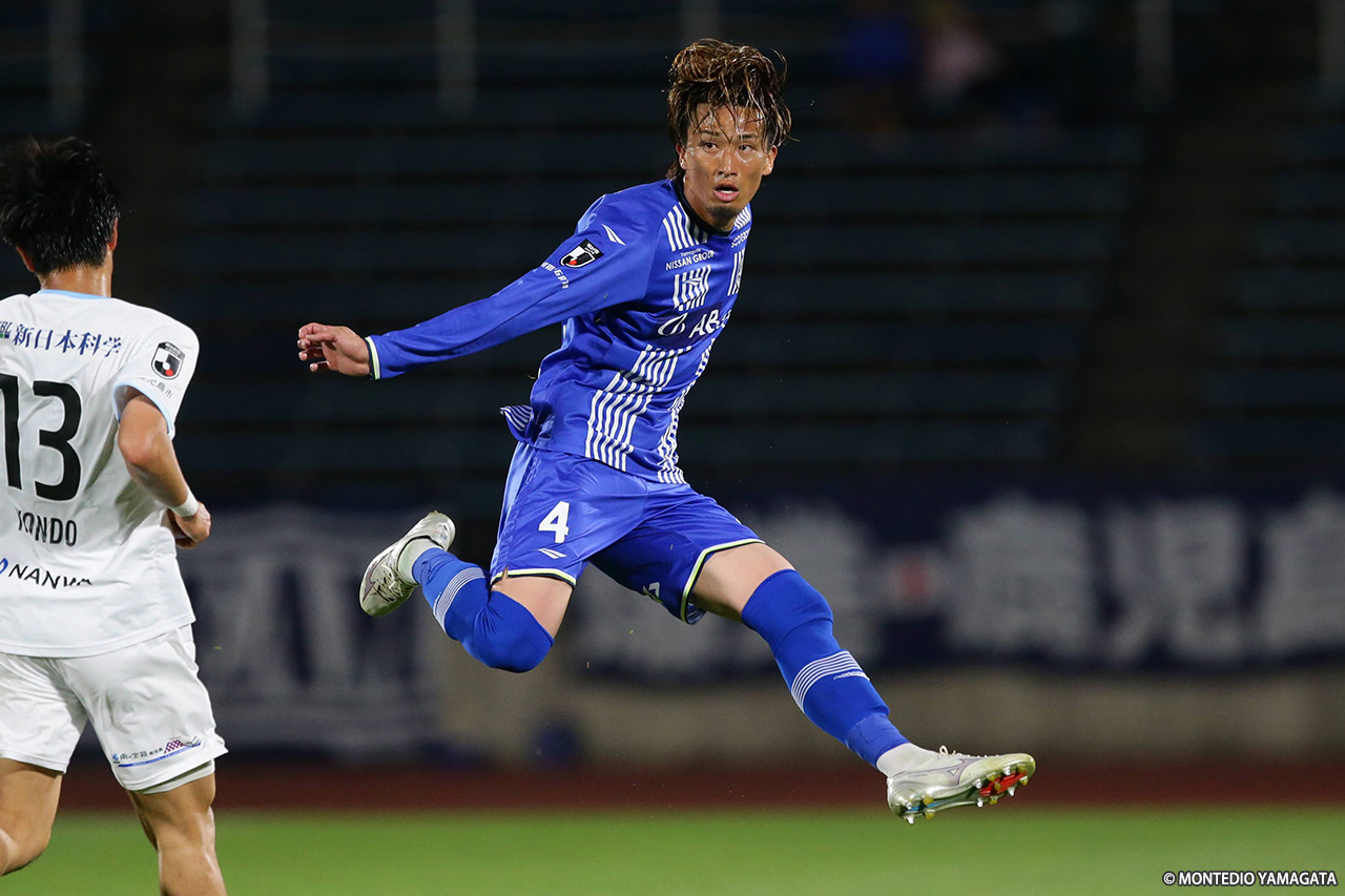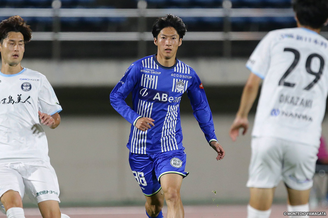 直近のリーグ戦から中3日の鹿児島が先発メンバー全員を入れ替えた中、中10日の山形はリーグ戦の主力を並べ、変更は3人のみ。寺門陸、安部崇士、ディサロ燦シルヴァーノが新たに加わった。