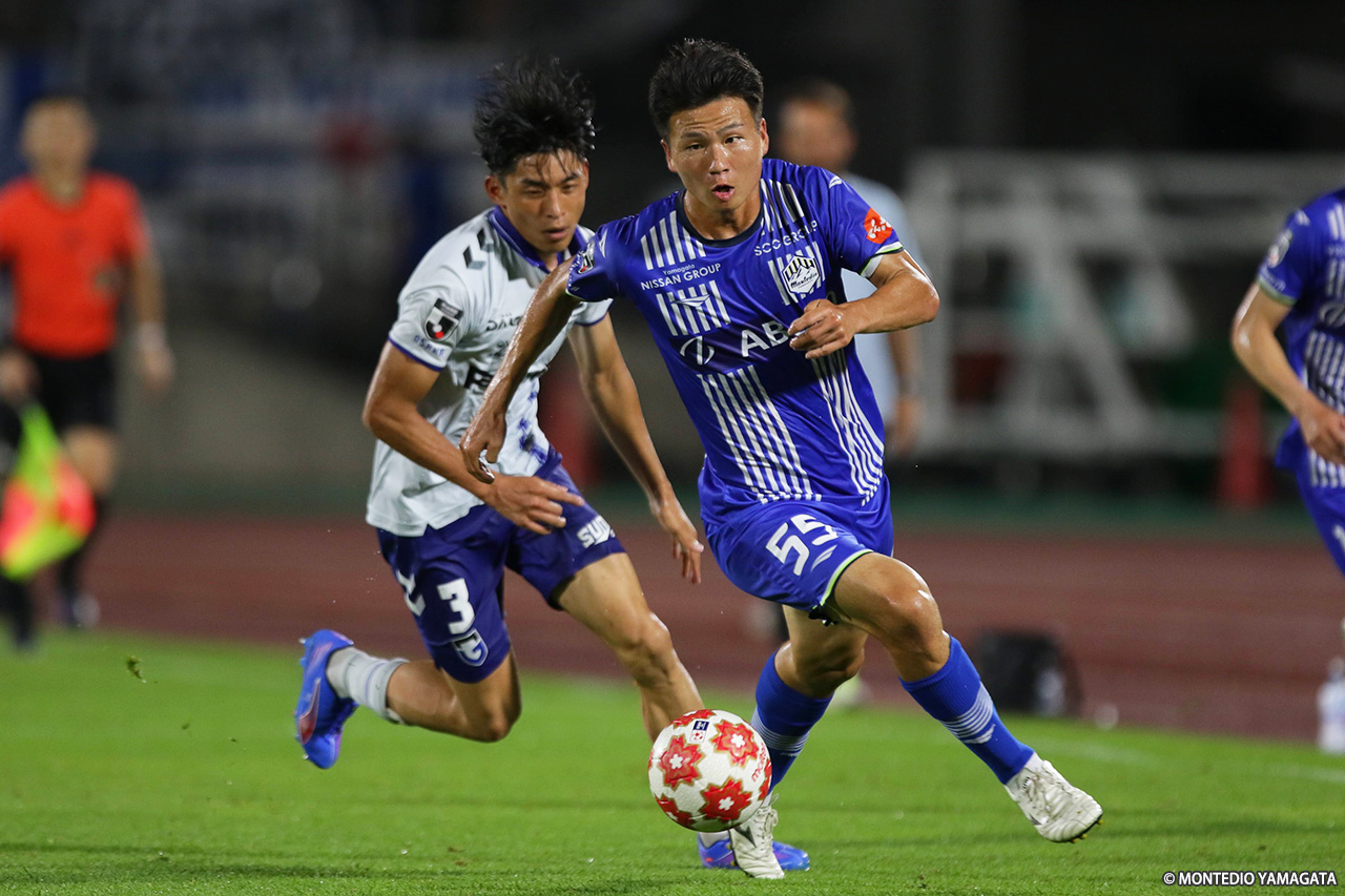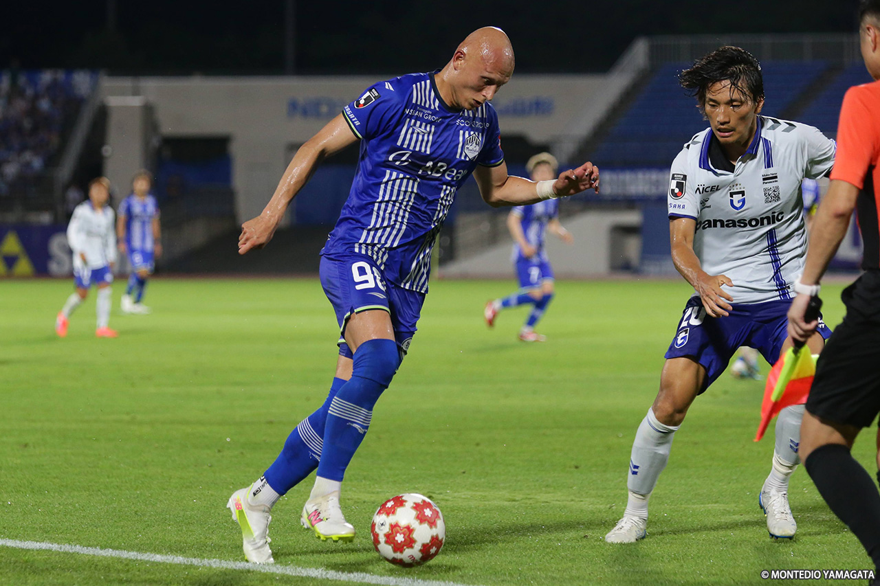 後半に入り、拮抗した展開が続く中、G大阪の2枚代えに続いて、山形も56分に2枚を交代。土居と國分を下げ、高橋潤哉と坂本亘基が入った。14分にはボールロストから半田にシュートを許したが、ここはGKヒュワード=ベルが好セーブで防いだ。しかし60分、押し込んだG大阪は、三浦のクロスを受けた途中出場の黒川圭介が左足でゴールネットを揺らし、試合が振り出しに戻った。