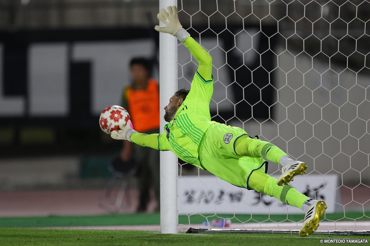 リーグ戦の中断期間に入り、J1のG大阪をNDスタに迎えた天皇杯3回戦は激しいシーソーゲームとなり、4-4でPK戦に突入。GKトーマス ヒュワード=ベルが2本止める活躍で4-3でモンテディオ山形が勝利し、ラウンド16に進出した。