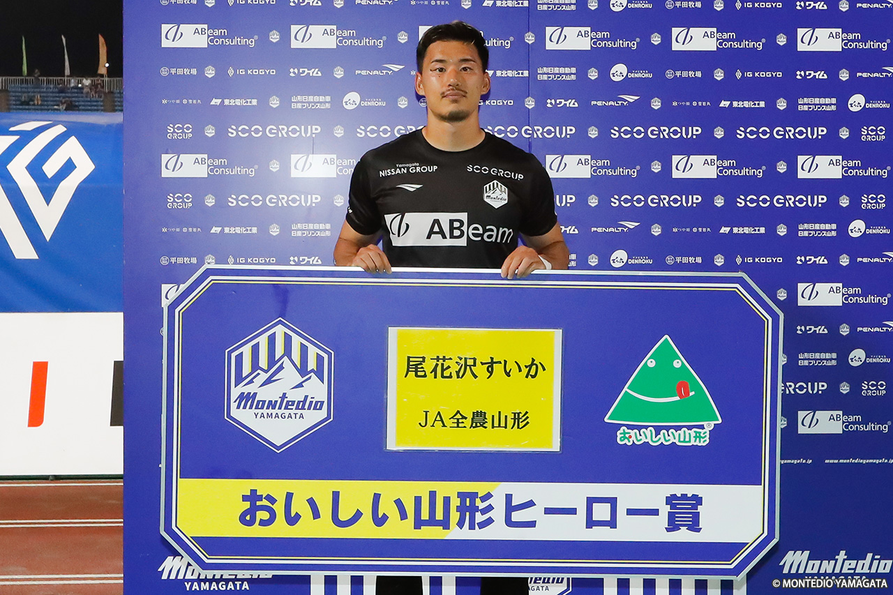 今日の試合は、モンテディオ山形として夏休み最後のホームゲームだと思いますけども、1万人を超える本当にたくさんの子どもたちやファンサポーターの方が我々の背中を最後まで押し続けてくれたことが勝利につながったと思っています。