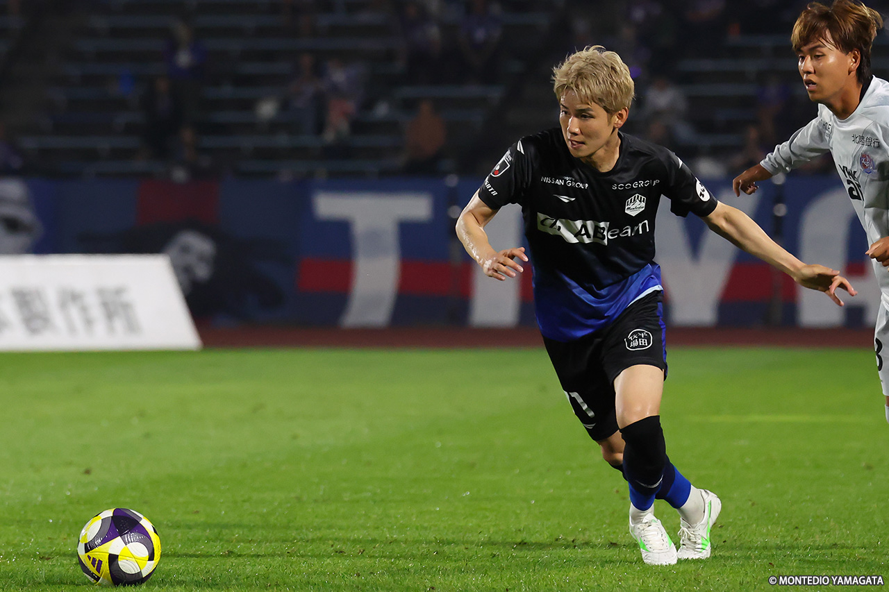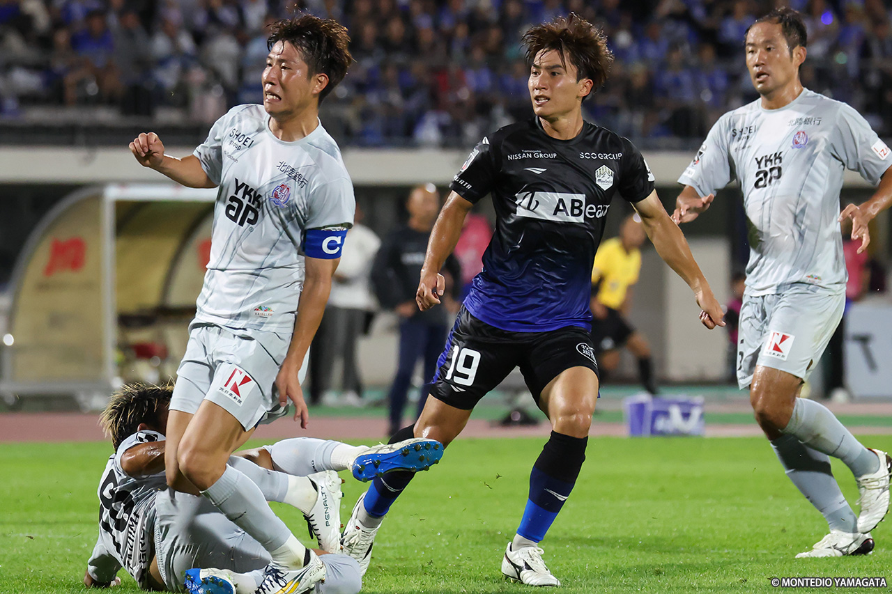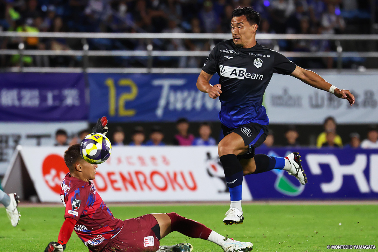 9月に入り、リーグ戦は残り10試合。逆転での昇格プレーオフ進出に向け、連勝が必須の13位・モンテディオ山形は今節、こちらも残留に向けて勝利が必須の18位・カターレ富山と対戦。前半に2ゴール、後半にも1ゴールを挙げて3-0で勝利。横内昭展監督就任後初の連勝を飾った。