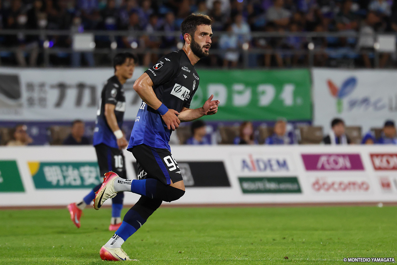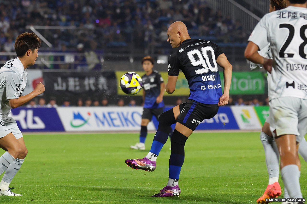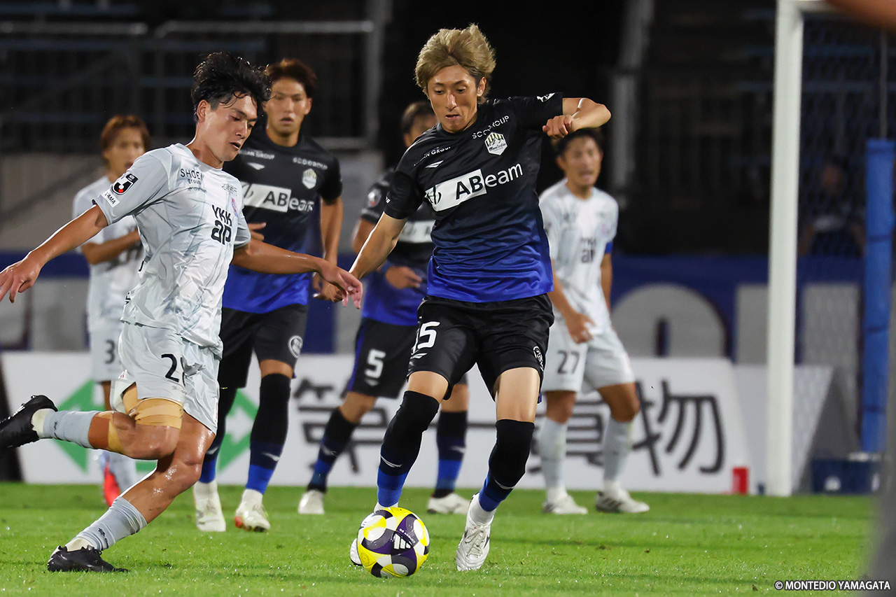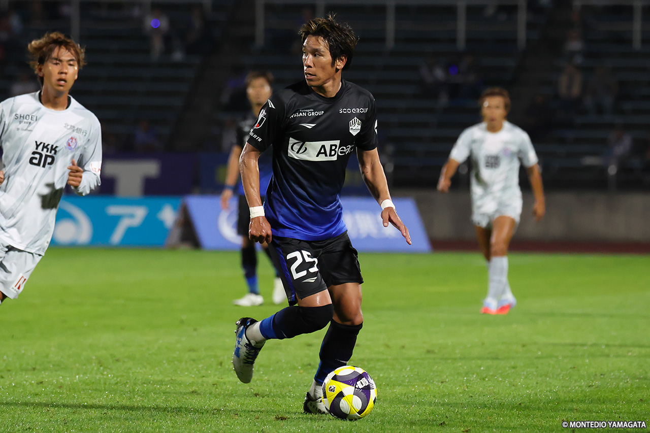9月に入り、リーグ戦は残り10試合。逆転での昇格プレーオフ進出に向け、連勝が必須の13位・モンテディオ山形は今節、こちらも残留に向けて勝利が必須の18位・カターレ富山と対戦。前半に2ゴール、後半にも1ゴールを挙げて3-0で勝利。横内昭展監督就任後初の連勝を飾った。