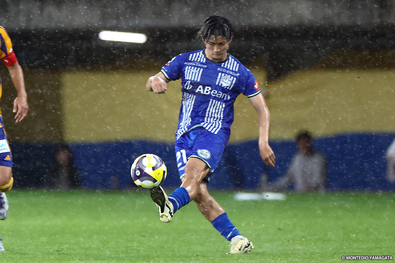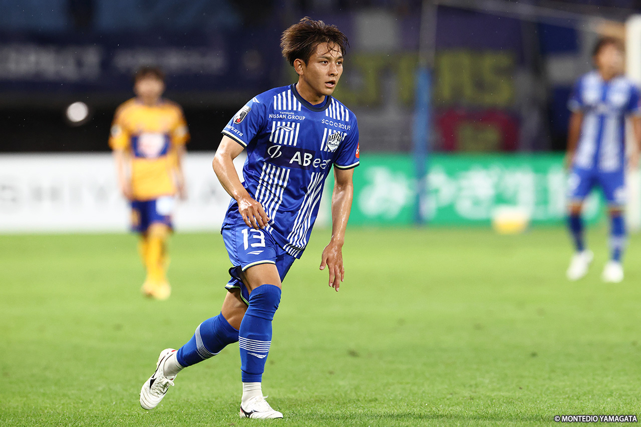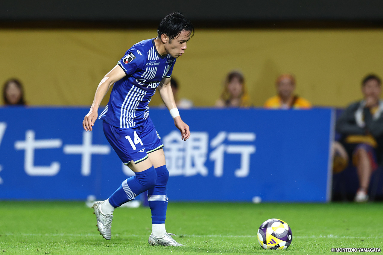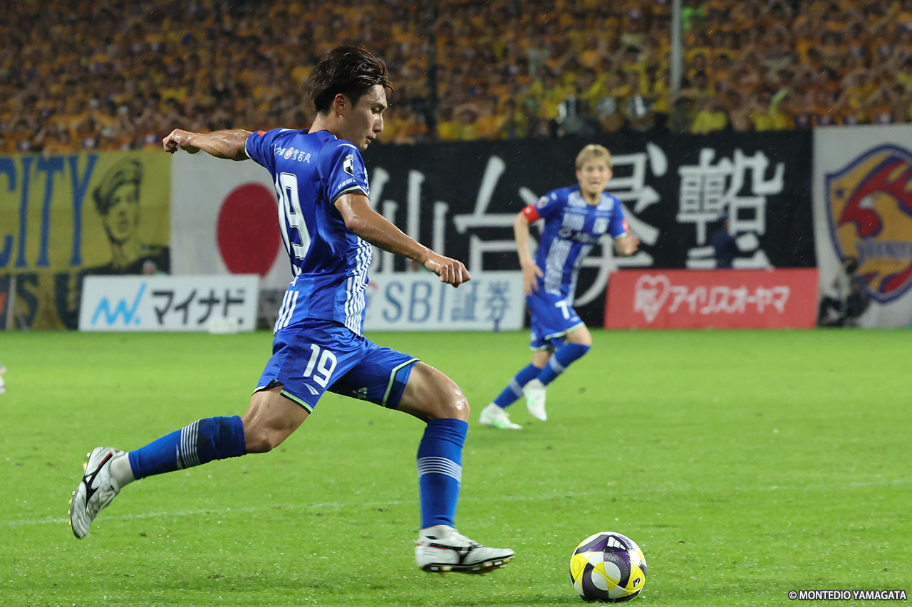 この1週間、練習だったり、練習が終わったあともいろんなイメージをしながら練習をしましたけど、前半にあっち(仙台)サイドで点を取りたいというのがまずありました。前半後半に1点ずつ決めたいというイメージもあって、その中で前半取れたのはよかったです。後半、山形サポーターの目の前で取りたかったですけど、もう1点、自分が取れなかったという課題はしっかりと反省したいなと思います。
