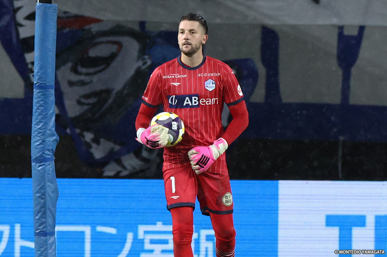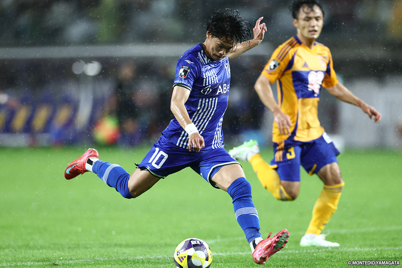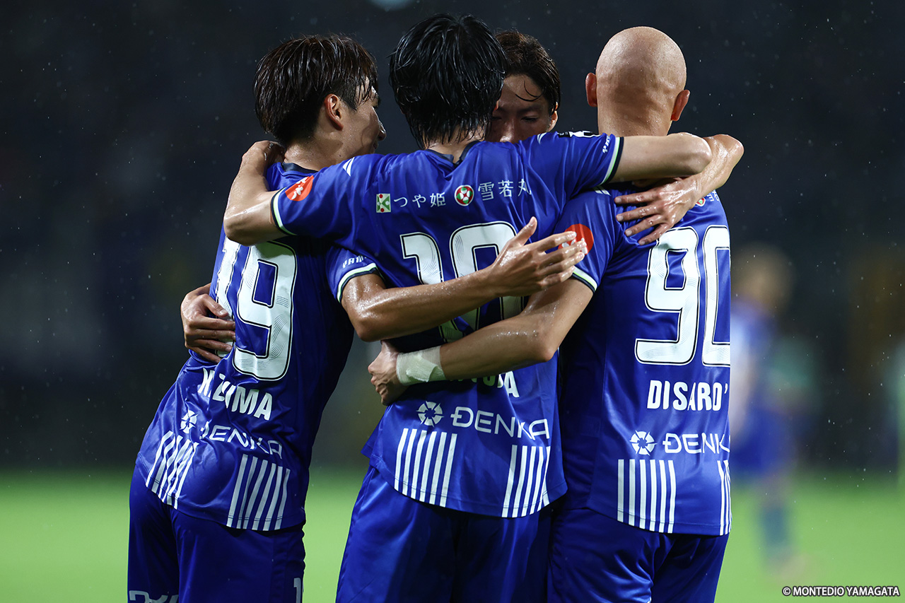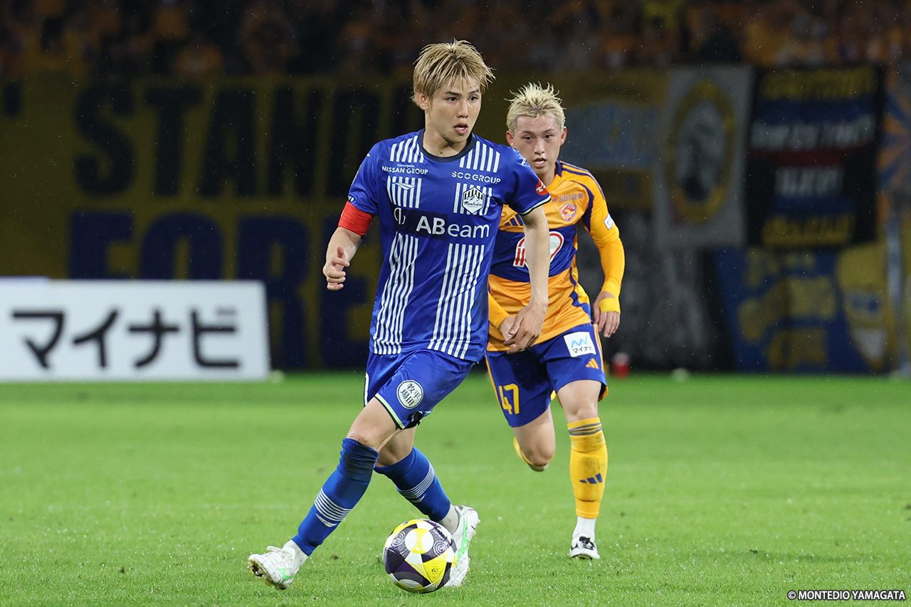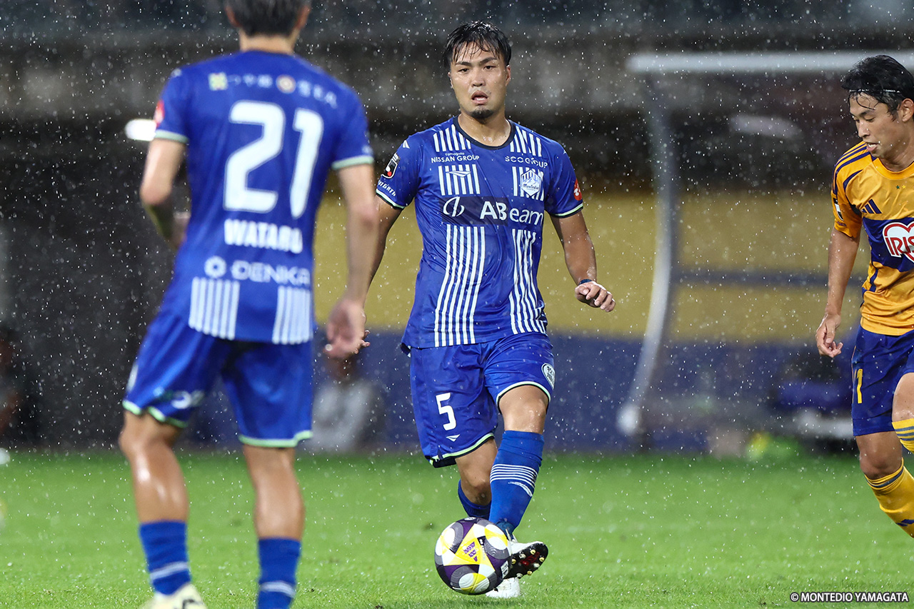前半のシュート数は仙台が6本に対して山形はわずか2本。しかし守備陣の落ち着いた対応や前線のプレスバックで凌ぎ、少ないチャンスを得点に繋げてリードで折り返した。