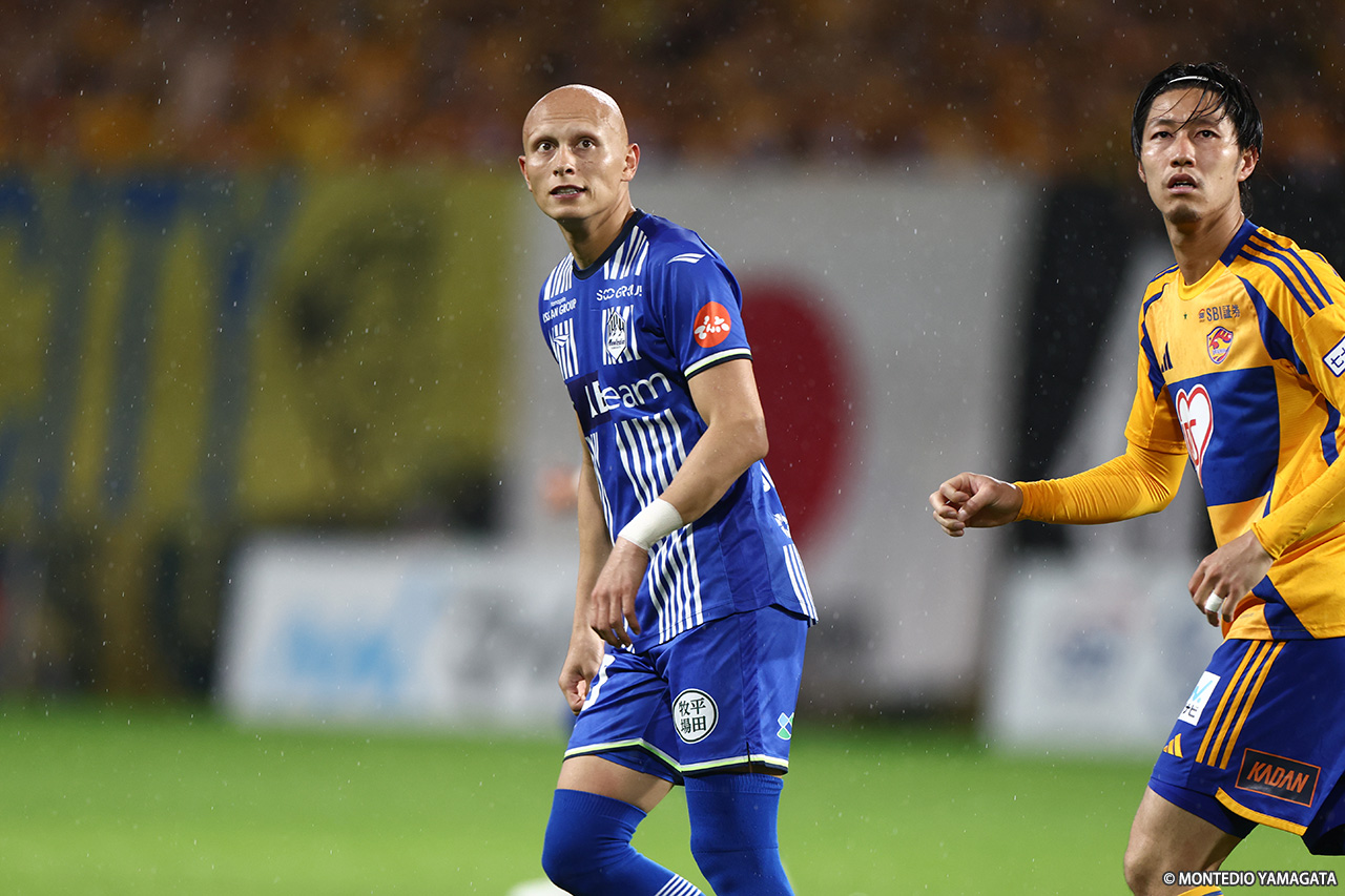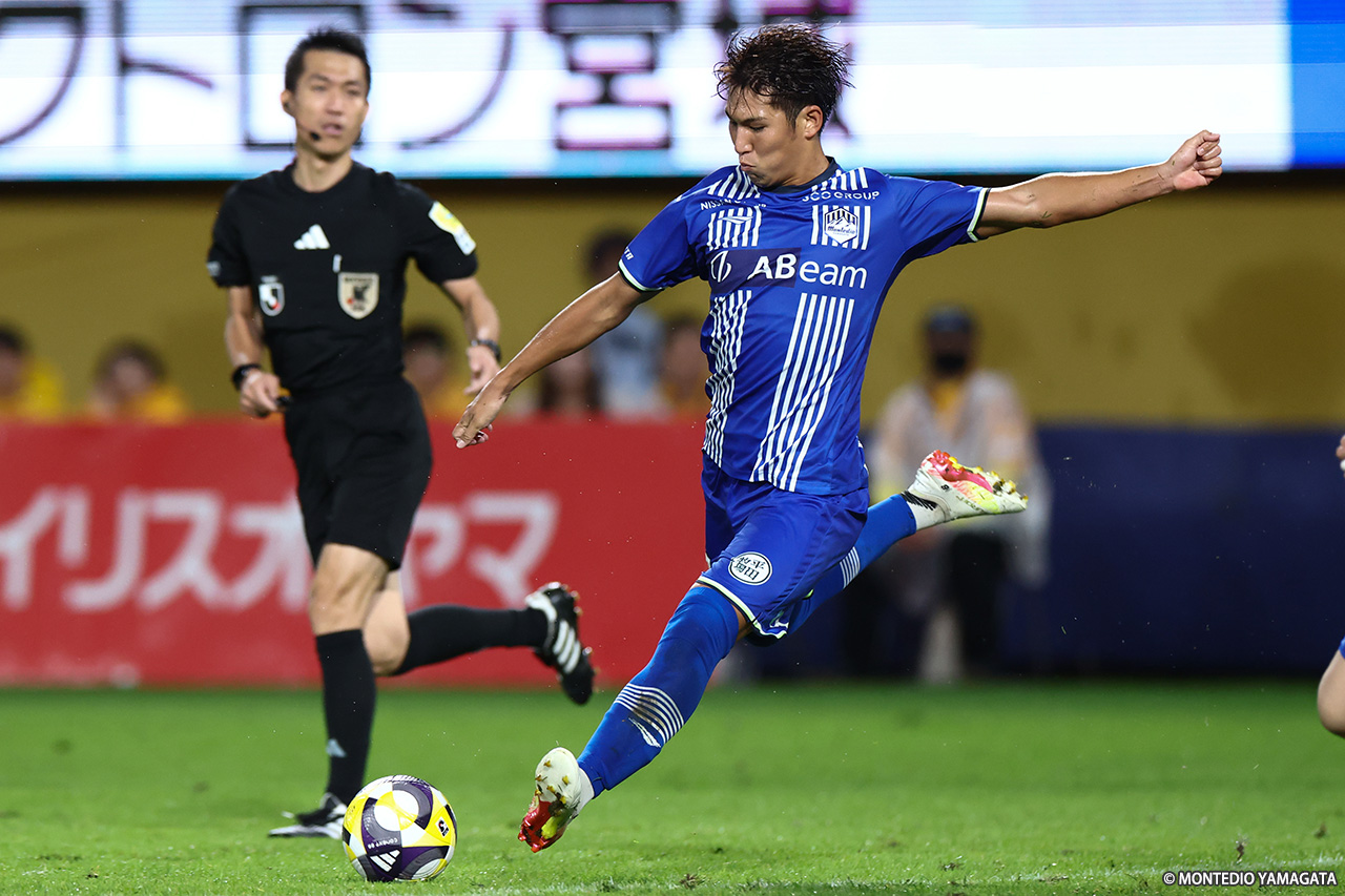 点差を広げられて苦しくなった山形は74分、田中が右サイドの高い位置でボールを奪い、高橋へ横パス。久しぶりにフィニッシュまで運んだがブロックに阻まれ、直後に得たCKも得点に繋げられなかった。