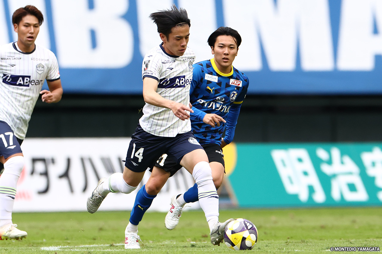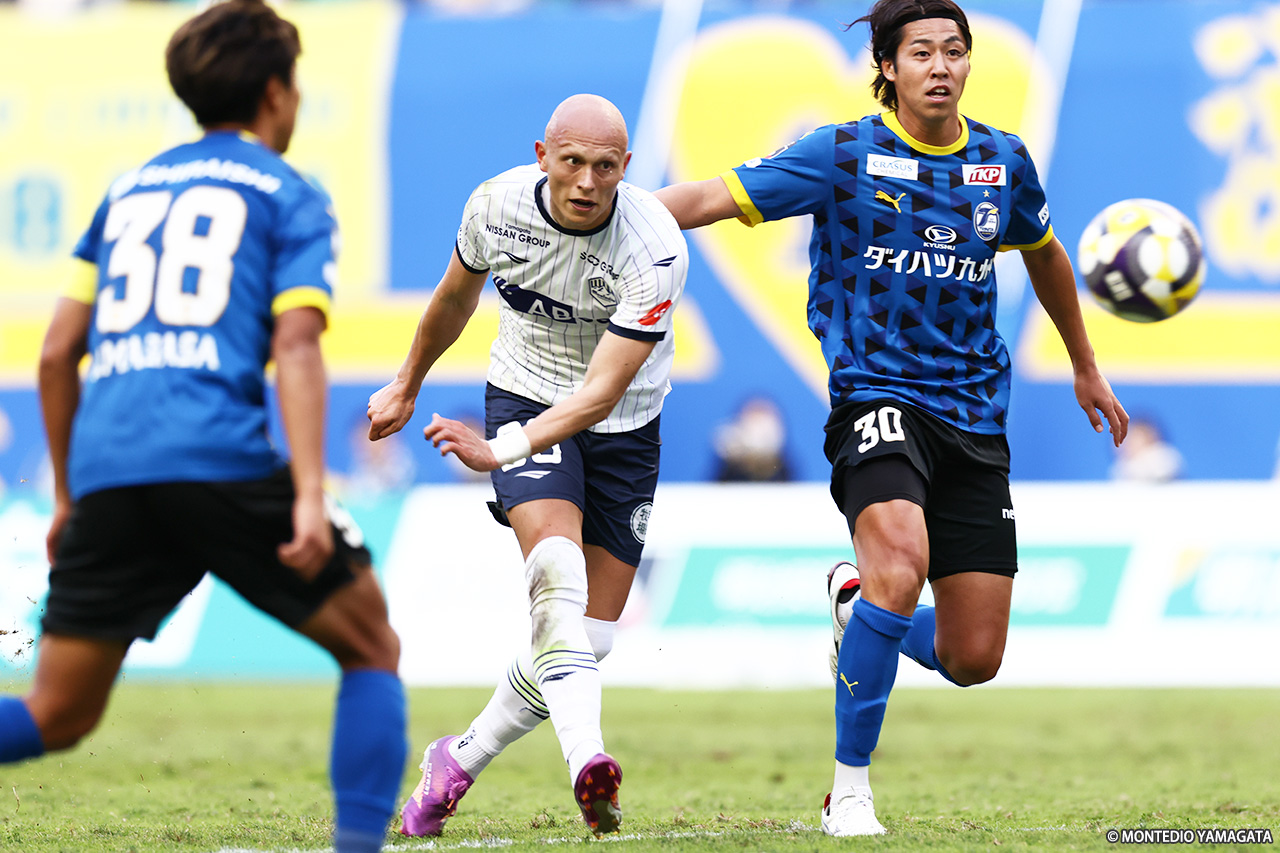 前節は痛恨のドローに終わり、J1昇格の可能性が消滅した12位・モンテディオ山形。残る4試合、来季につながる戦いとしたい中、15位・大分トリニータとのアウェイゲームを迎えた。前半に2点を先行、後半に1点差に迫られたが、これ以上の反撃は許さず勝点3を獲得した。