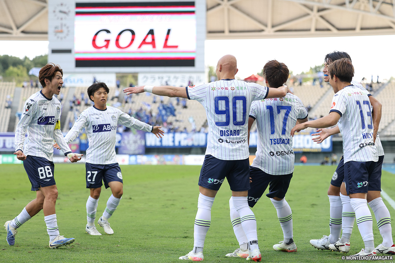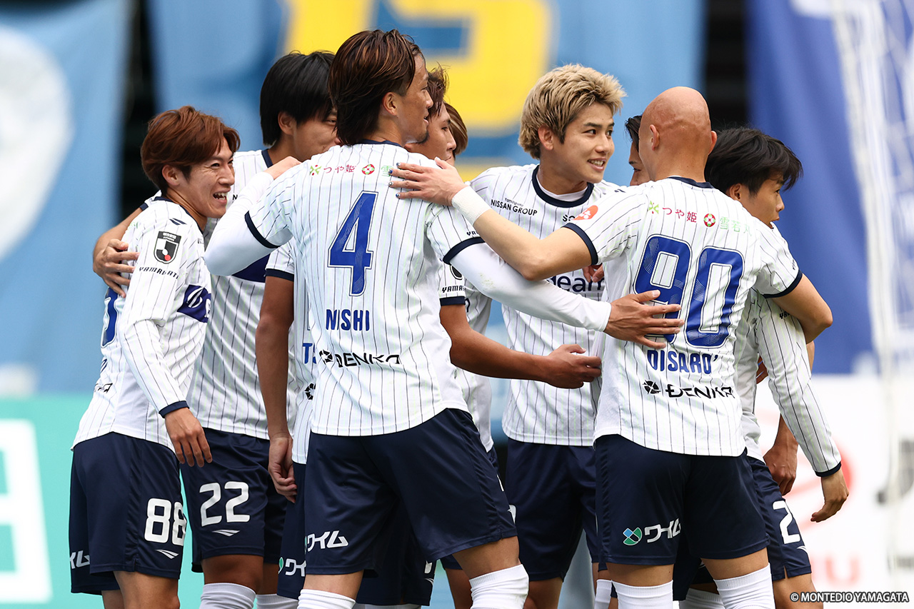 これで山形の通算成績は13勝7分15敗、勝点46とし、順位は11位に浮上した。次節は9日(日)、ホームに戻り10位・FC今治と対戦する。