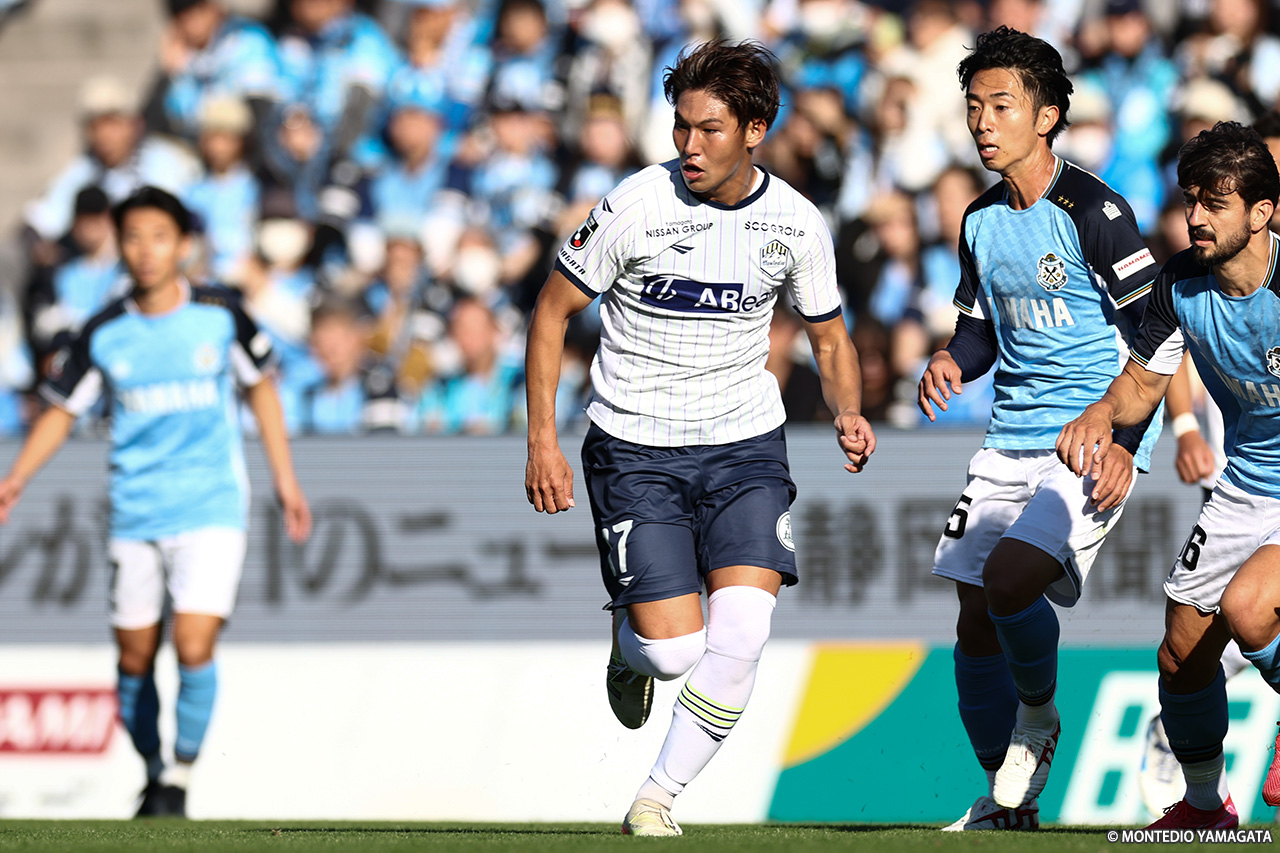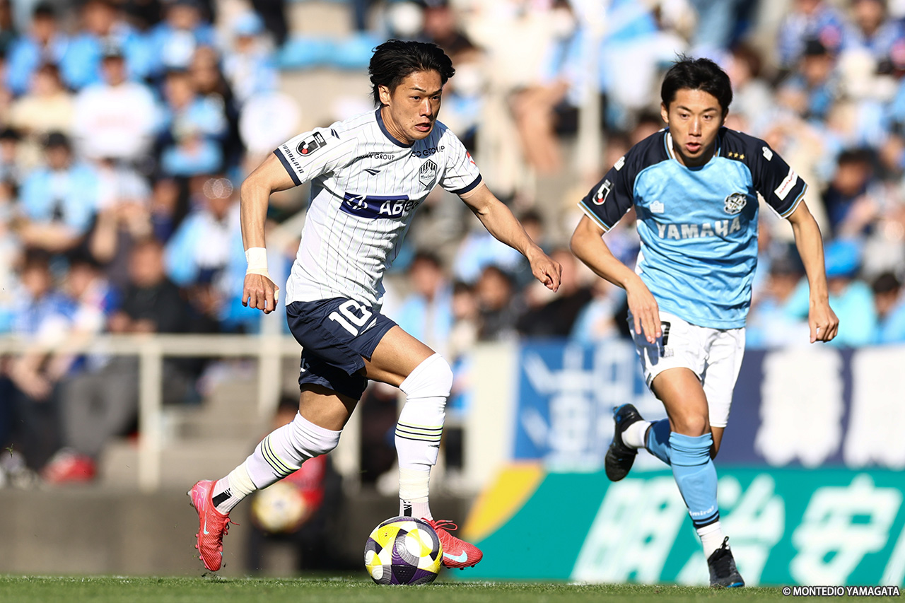 直近6試合負けなしの11位・モンテディオ山形は、アウェイ最終戦となる今節、J1昇格プレーオフ圏内と勝点1差の7位・ジュビロ磐田と対戦。2度のリードを奪いながら土壇場で追いつかれ、またも今季初の3連勝はならず。勝点1の獲得にとどまった。