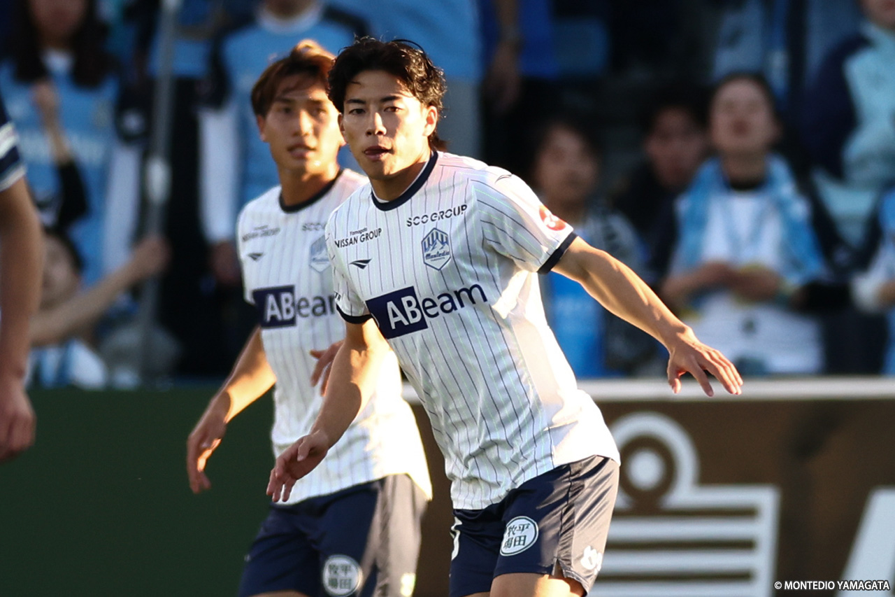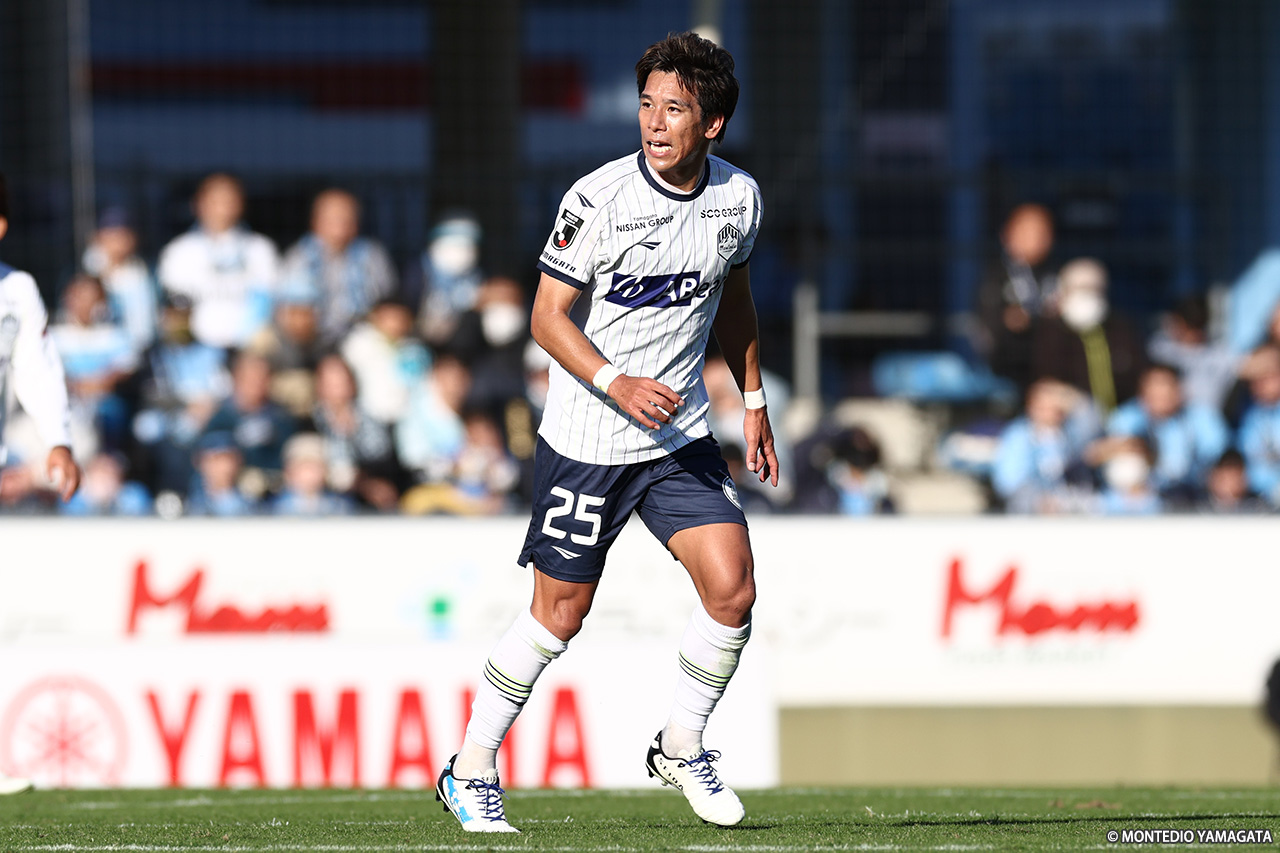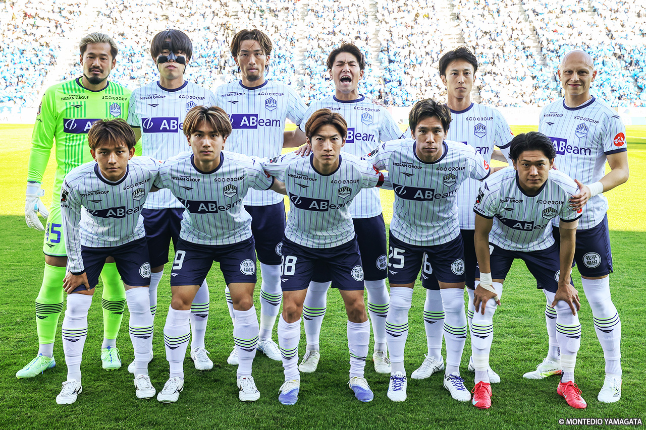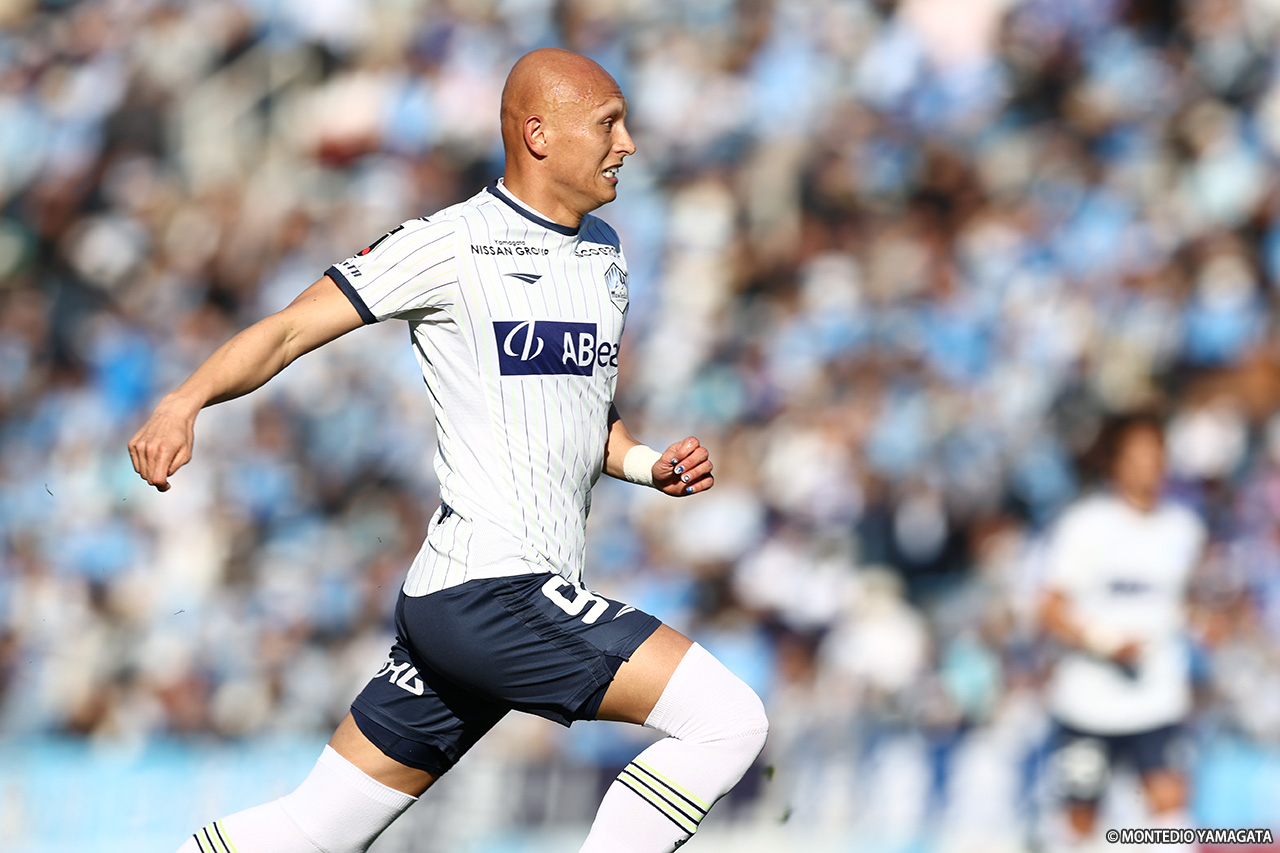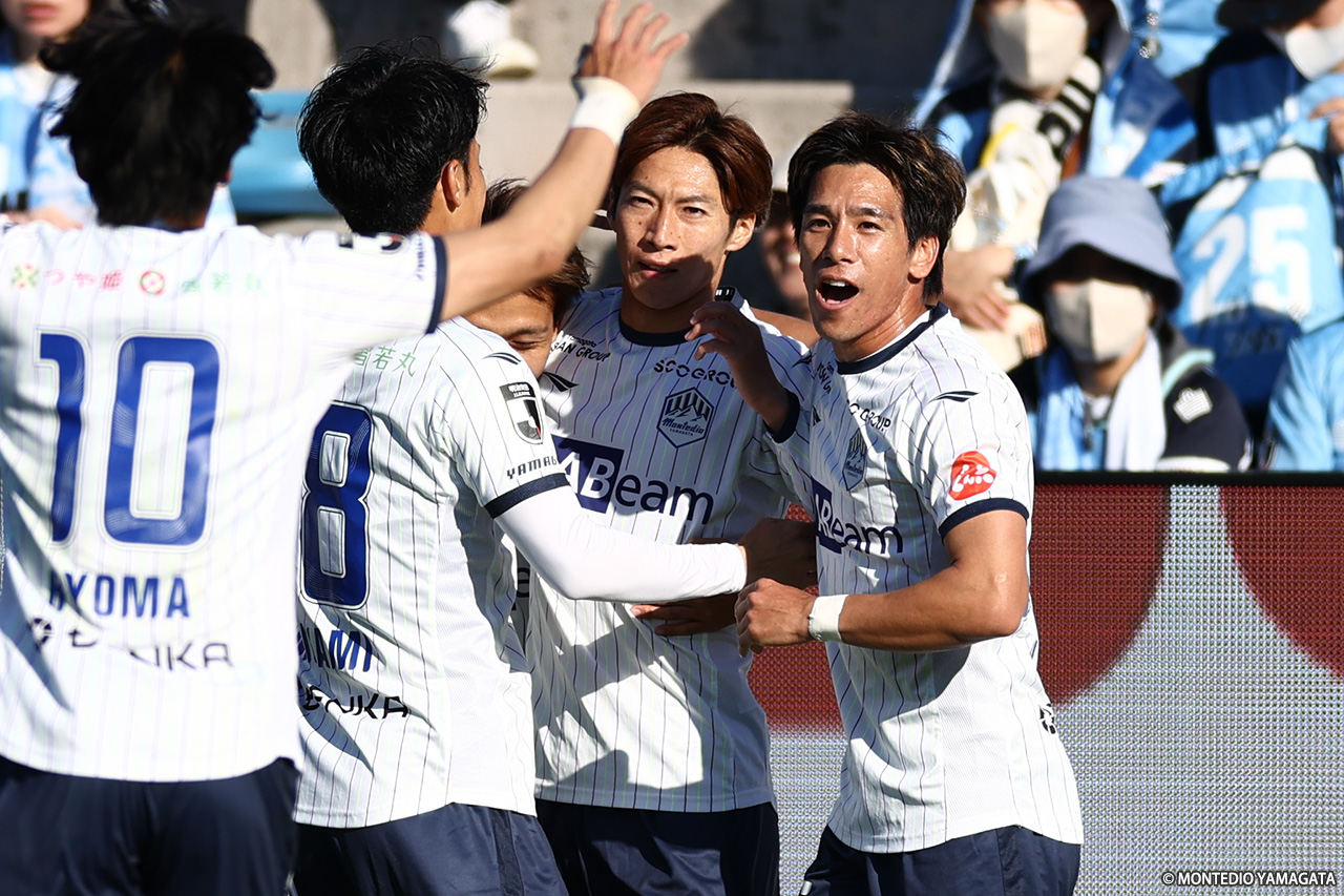 再三送られるロングボールやクロスを城和や西村慧祐を中心に跳ね返し、今季初の3連勝が近づいてきた山形。しかし90分+6、角のクロスをファーサイドで待ち構えていたファンデンベルフに高打点のヘディングで叩き込まれ、今期繰り返されていた終了間際の失点を喫した。同点とされた直後、角の横パスを受けた松原后に切り返しからのシュートを許したが、渋谷がキャッチしてタイムアップ。負けなしは7試合に伸ばしたが、悔しい引き分けに終わった。
