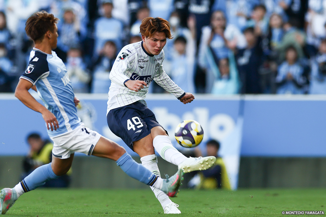 28分から山形はセットプレーを連続して獲得し、野嶽寛也や南にシュートチャンスが訪れたが、相手の守備に阻まれる。34分には左サイドを崩して國分伸太郎がクロス。ニアで受けた氣田亮真が右足で合わせたが、川島に防がれた。