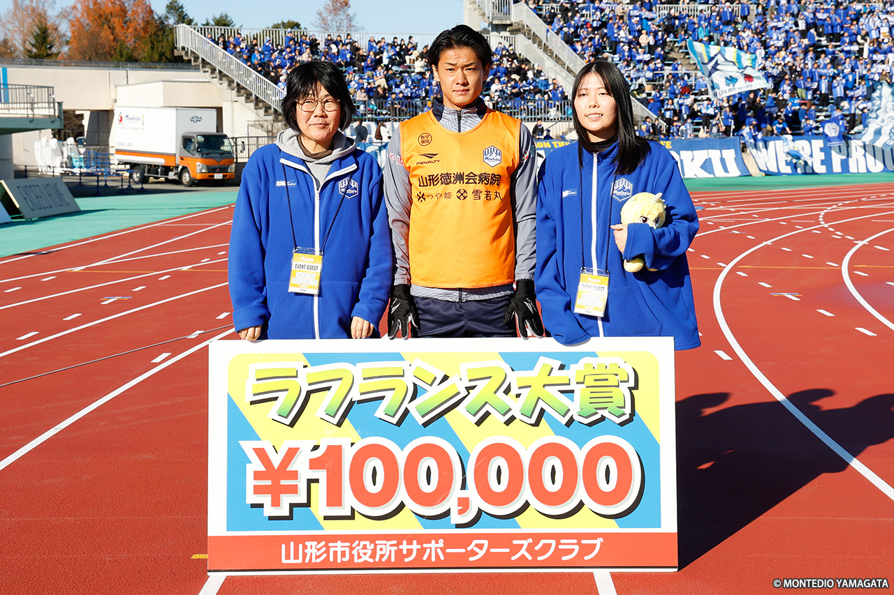 リーグ戦最終節を今季もホームで迎えた11位・モンテディオ山形は、前節の試合でJ2残留を決めた15位・藤枝MYFCと対戦。今季最多17,261人が詰めかけた一戦は、山形が2-1で勝利した。