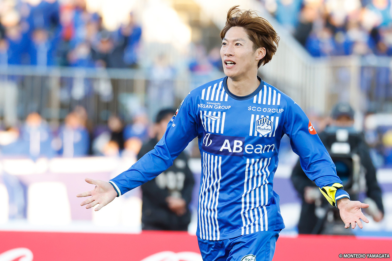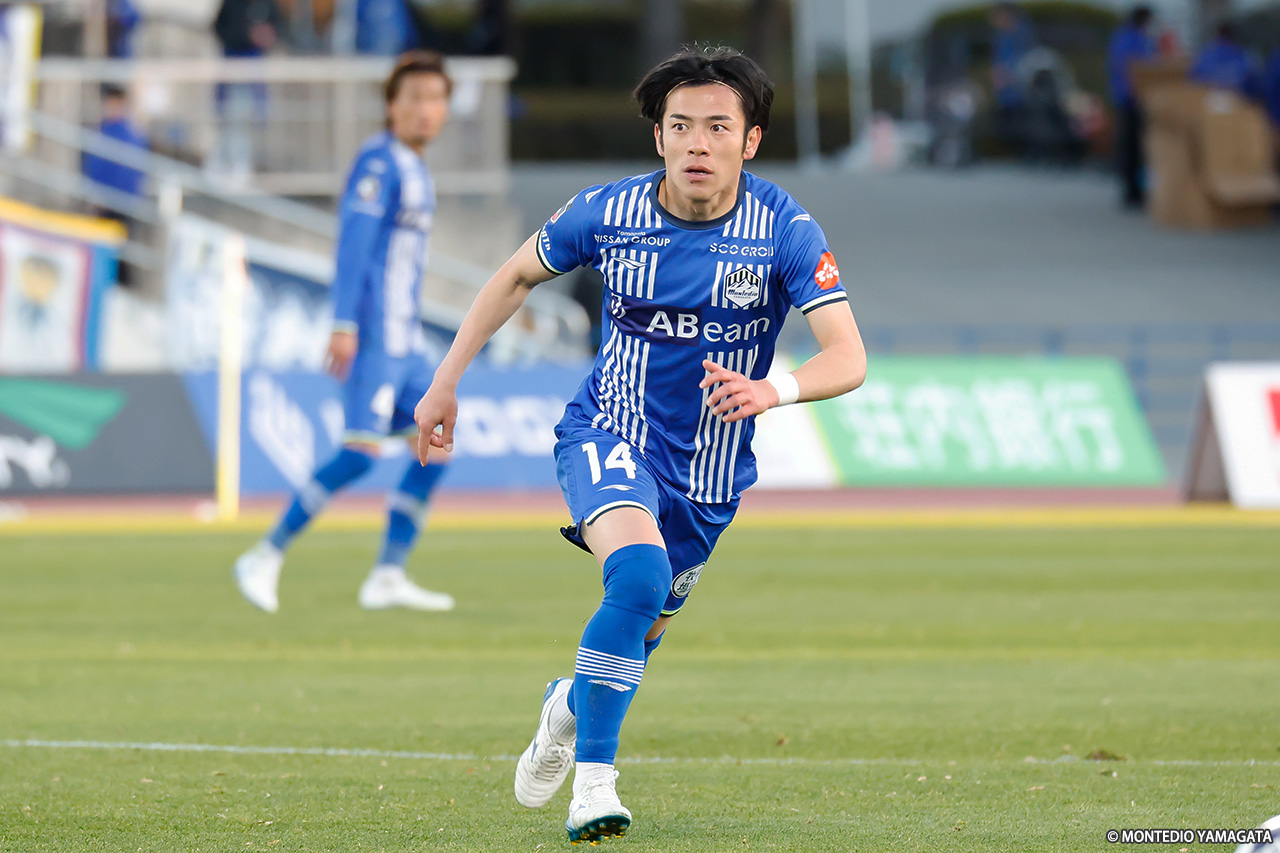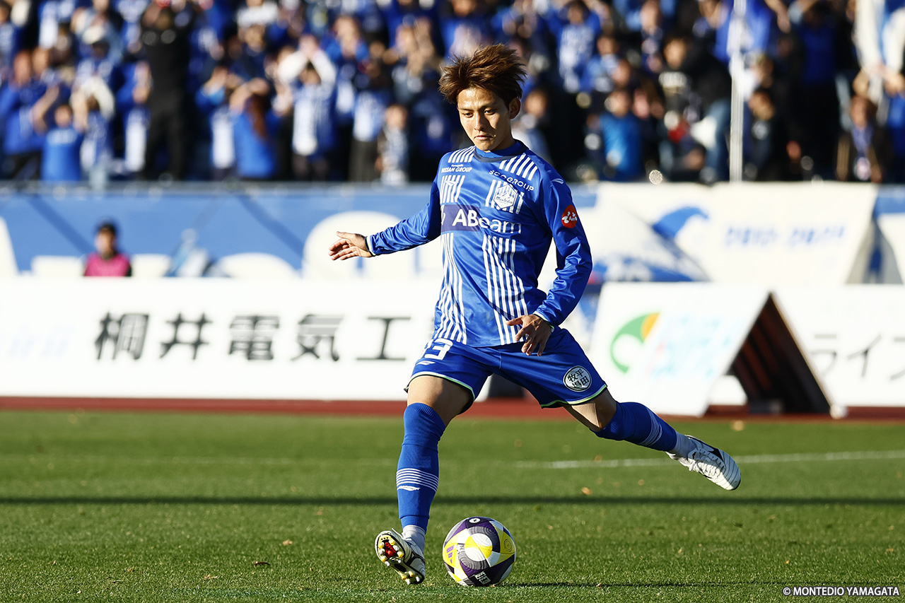 最初にモンテディオ山形さんから声をかけてもらったときに、横内(昭展)監督とも面談をして、「移籍してきたから必ず出られるわけじゃない」と。それは僕自身も分かっていたし、その競争の中で勝っていかなきゃいけないというのは監督から伝えてもらったので、僕自身も当初は途中からの出場が多かったですけど、最後、スタメンに起用してもらったり、ゴールという結果で返せたというのは、僕自身にとってすごくいい半年になったし、これを来年以降も継続していかないといけないと思うので、それに向けていいオフシーズンを過ごしたいなと思っています。