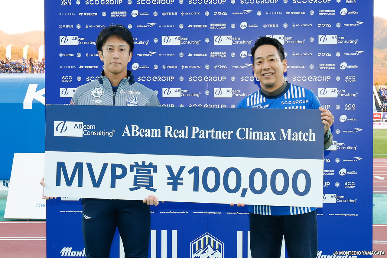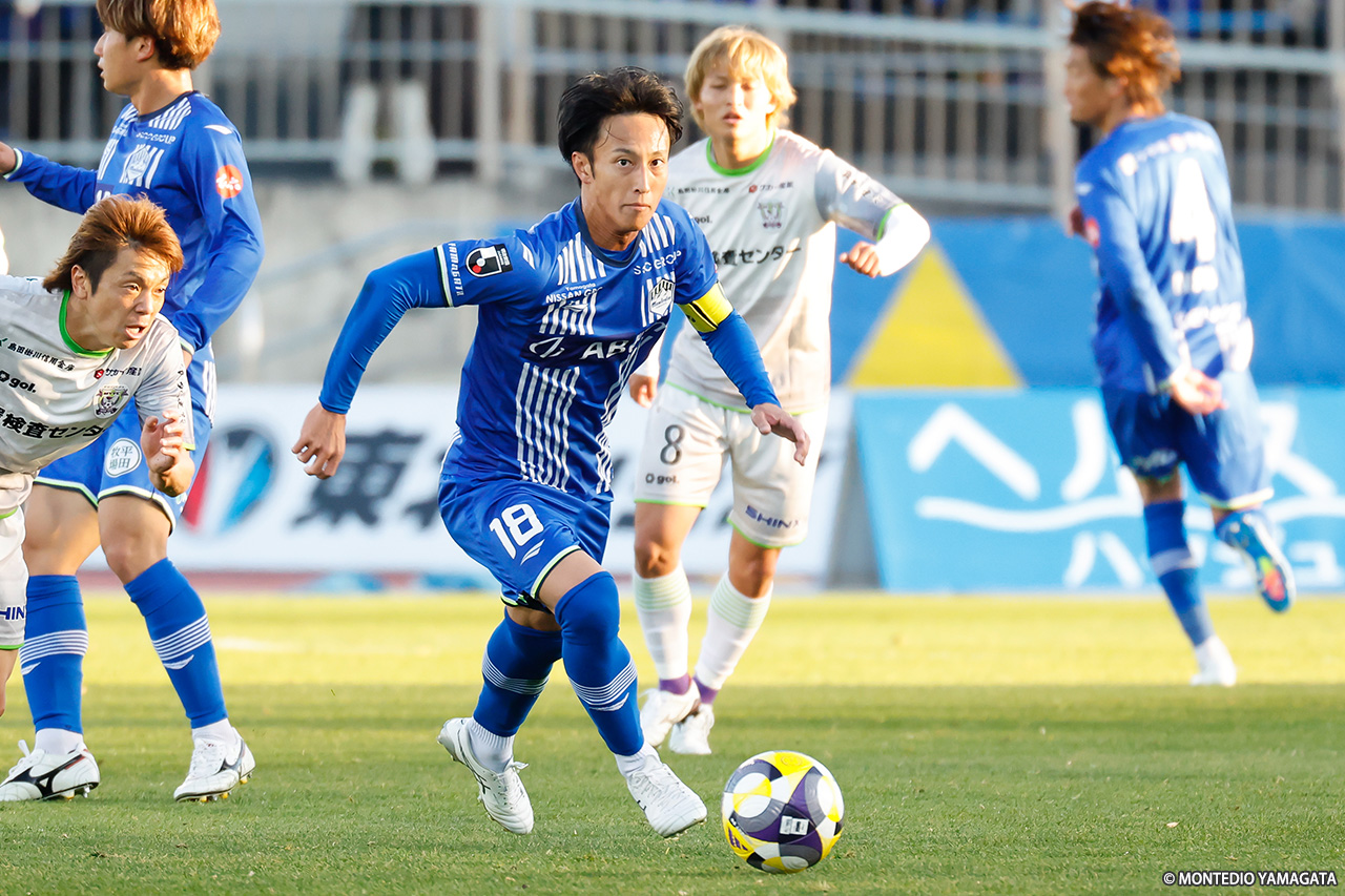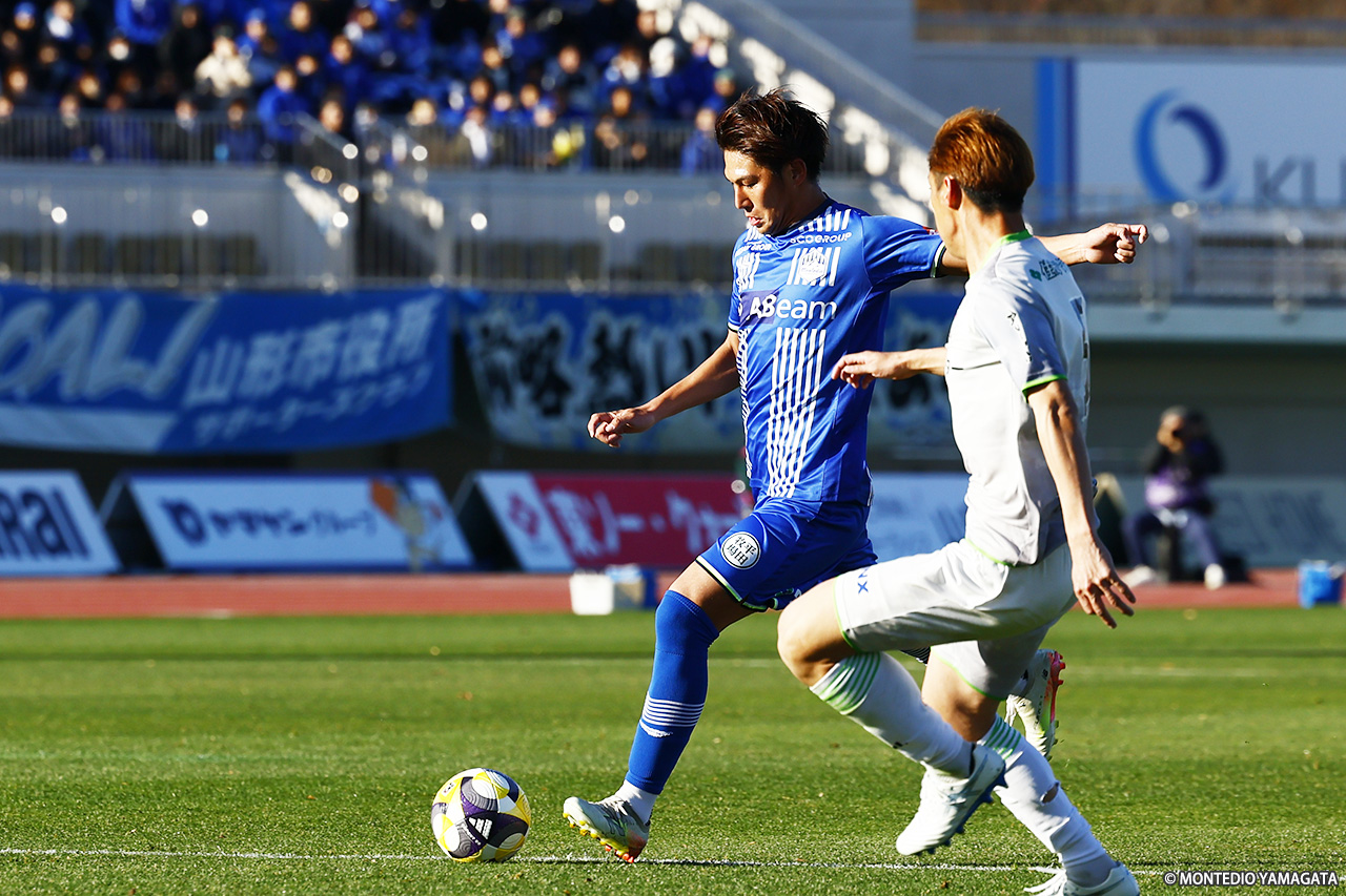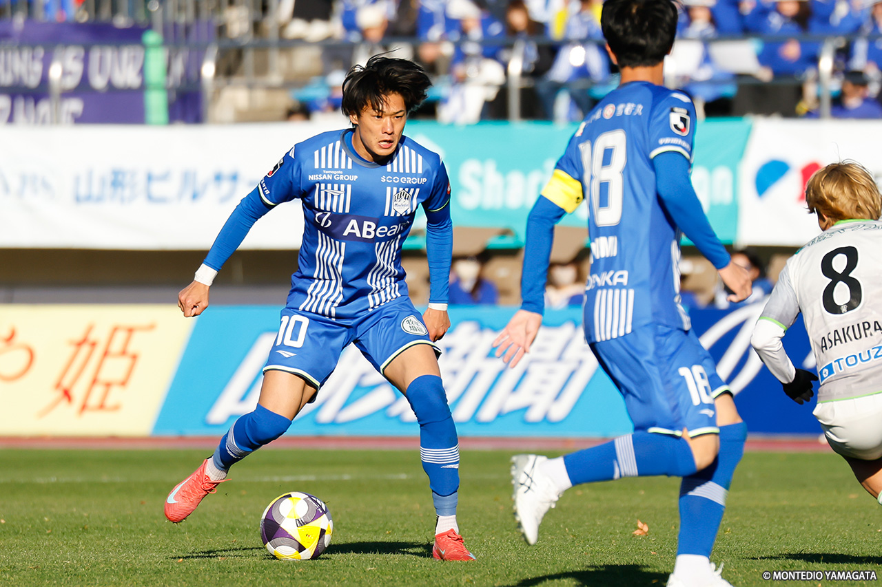 最初にモンテディオ山形さんから声をかけてもらったときに、横内(昭展)監督とも面談をして、「移籍してきたから必ず出られるわけじゃない」と。それは僕自身も分かっていたし、その競争の中で勝っていかなきゃいけないというのは監督から伝えてもらったので、僕自身も当初は途中からの出場が多かったですけど、最後、スタメンに起用してもらったり、ゴールという結果で返せたというのは、僕自身にとってすごくいい半年になったし、これを来年以降も継続していかないといけないと思うので、それに向けていいオフシーズンを過ごしたいなと思っています。