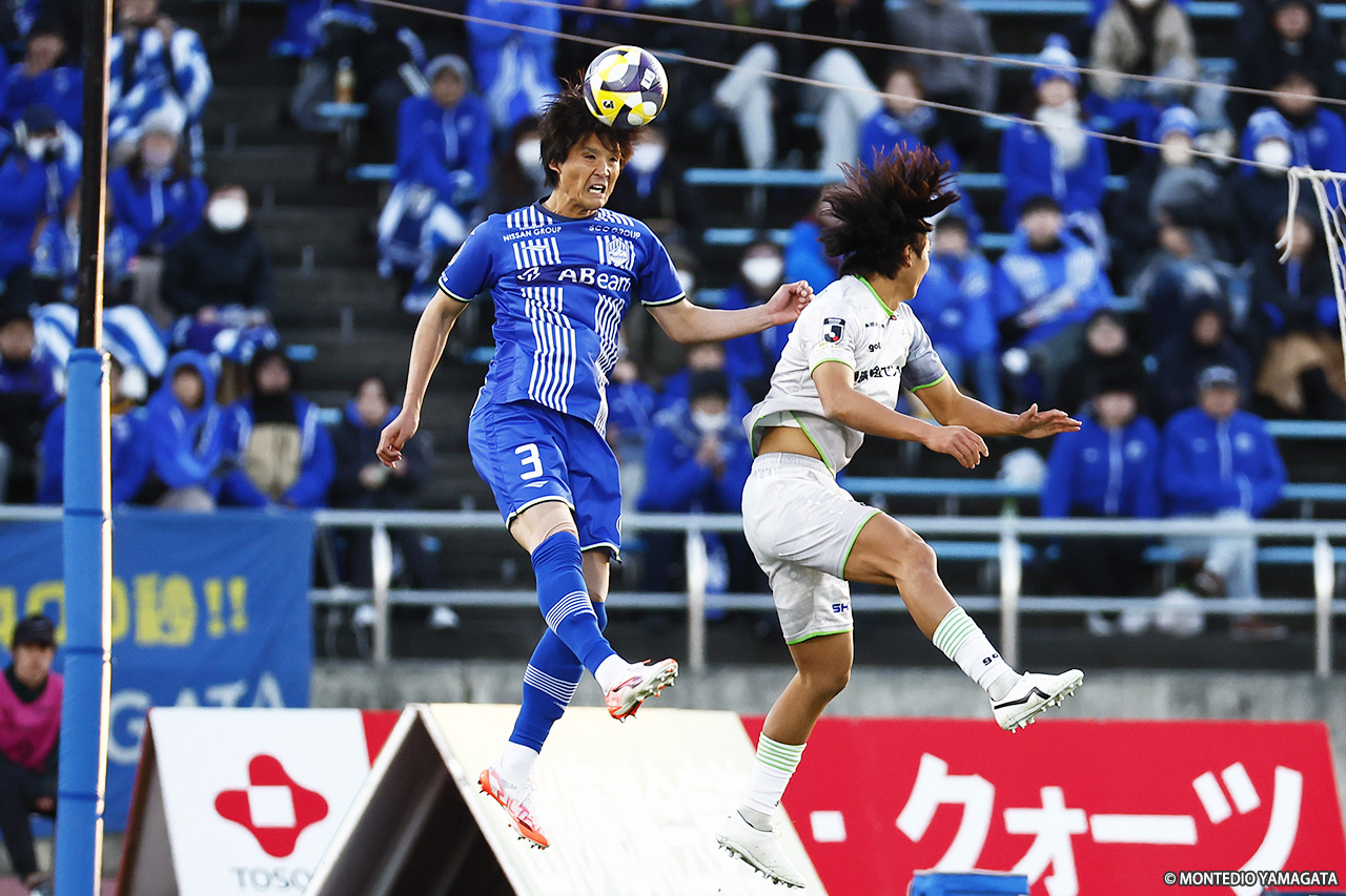 追いつかれた山形だったが83分、榎本が中に切り込むドリブルで長い距離を運び、右へパス。氣田のクロスが相手に当たってCKのチャンスを得る。キッカー・野嶽のクロスを高橋が頭ですらすと、浮き球に坂本稀が競り勝ち、ボールは前方へ。これに反応した土居が右足ボレーで狙うとゴールラインを割った。南からキャプテンマークを引き継いだ土居の2試合連続ゴールで、山形が勝ち越しに成功する。