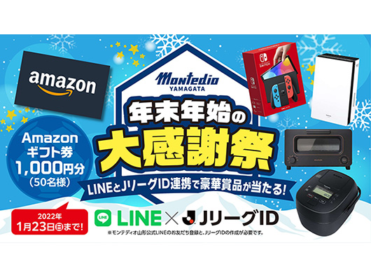 豪華家電、Amazonギフト券が当たる!!年末年始・大抽選会のお知らせ 「JリーグID」を「クラブ公式LINE」と連携しよう!
