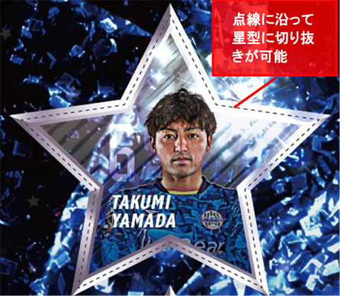 - 1シート6つの星型チケット入りで、各星型チケットに選手写真が入っています
