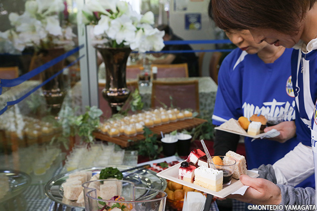 公園レストランテラスではスイーツバイキングを開催。こちらはバックスタンド自由席チケットとのセットとなっていましたが、すぐに完売となっただけあって大盛況でした。